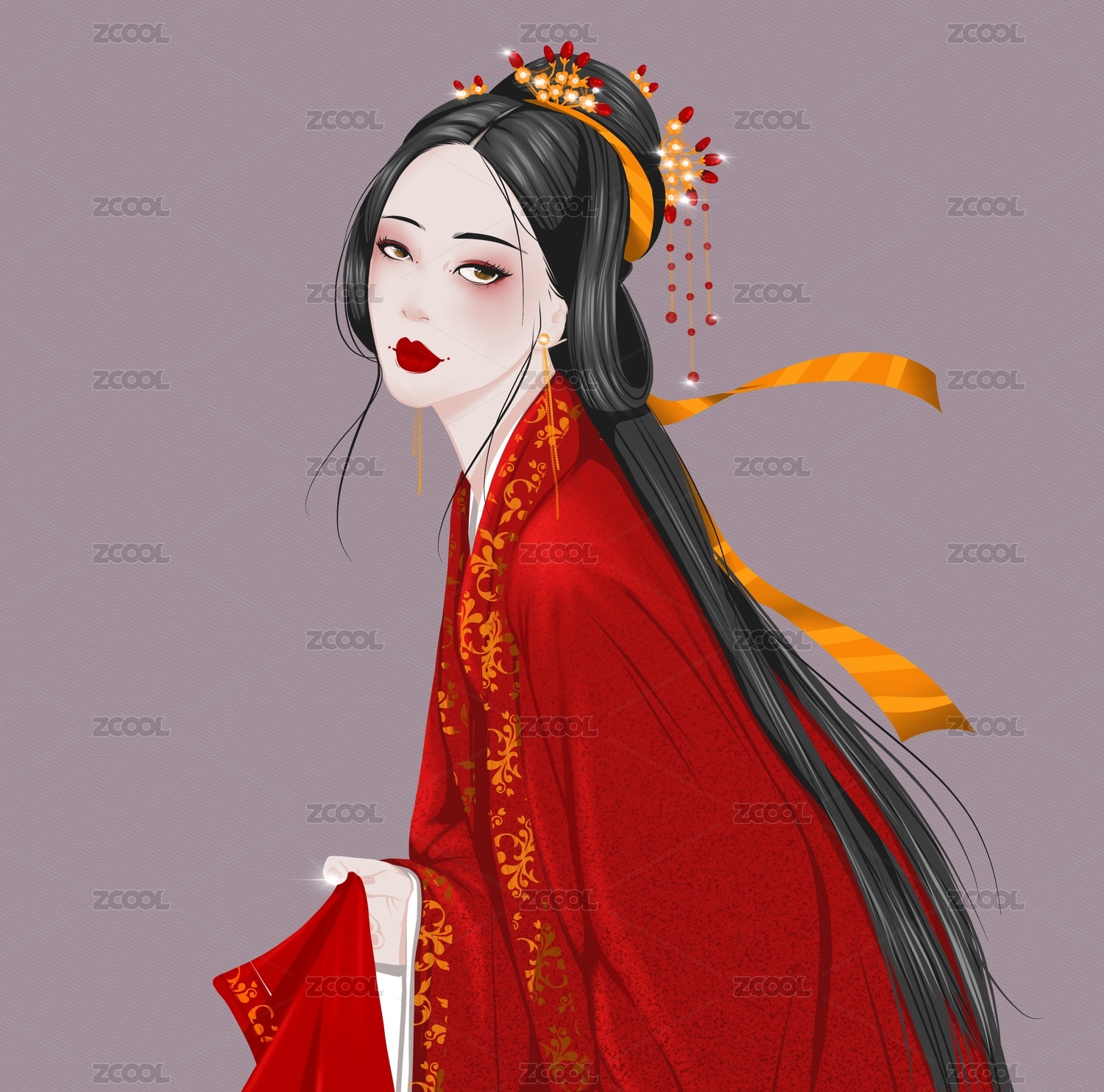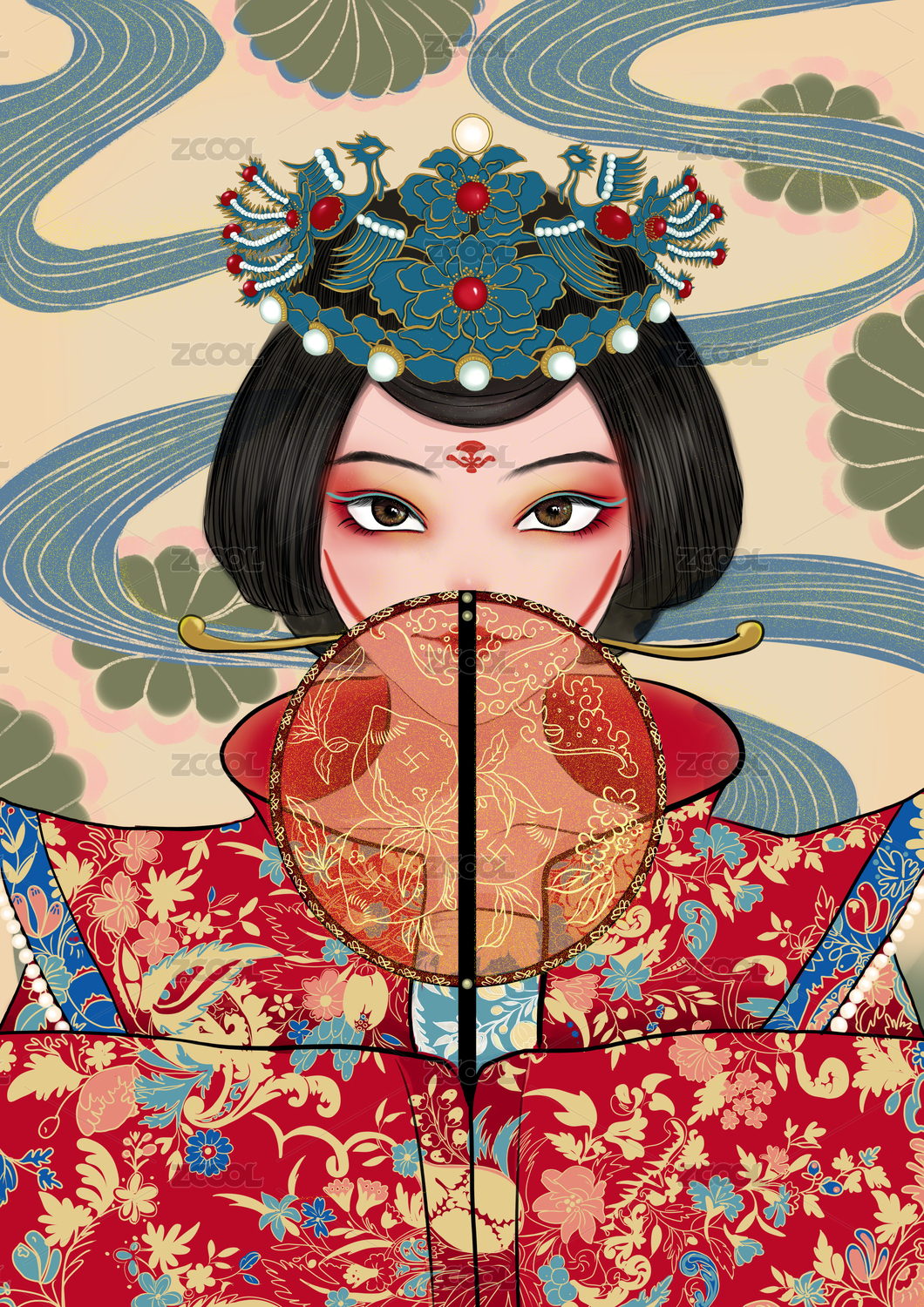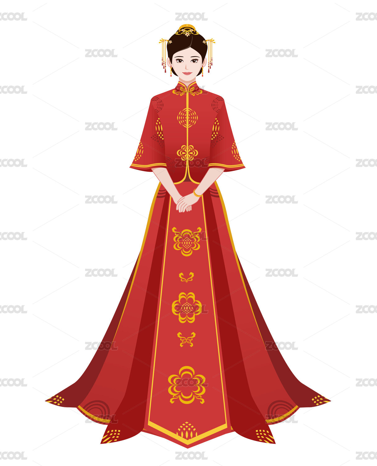 一位穿著中式結(jié)婚禮服的新娘 矢量插畫