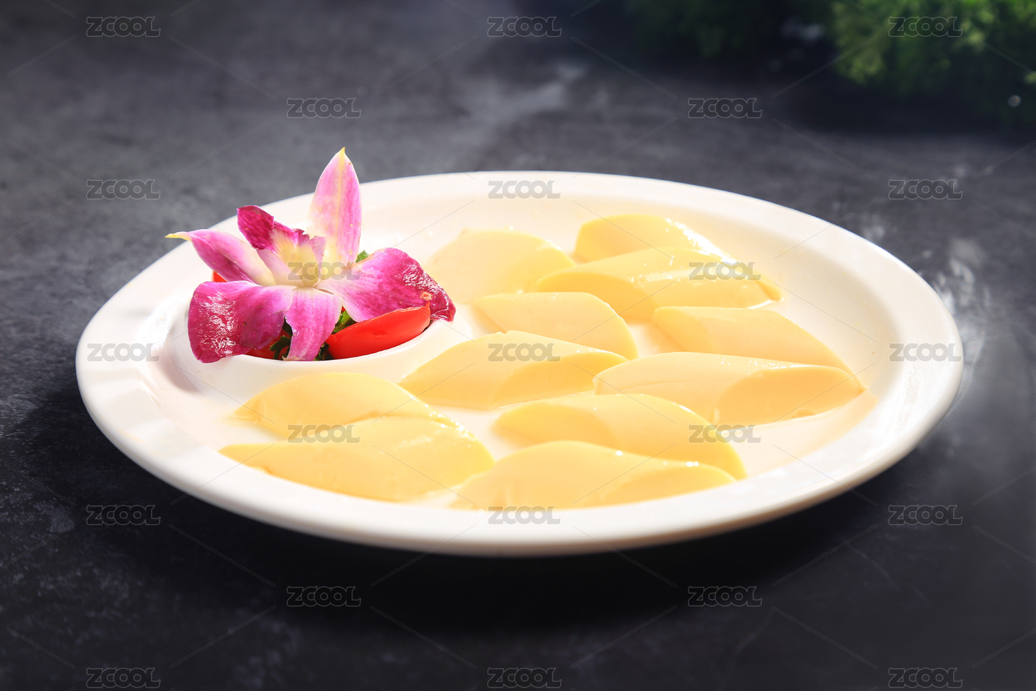 日式盤子冰塊上竹編提籃里的日本豆腐