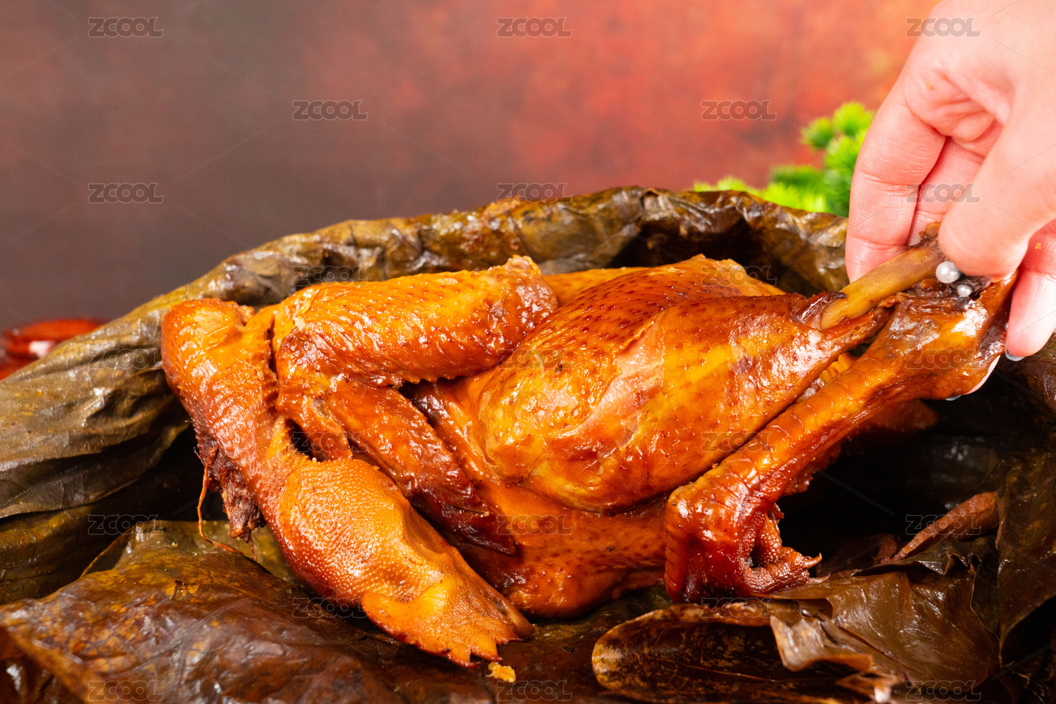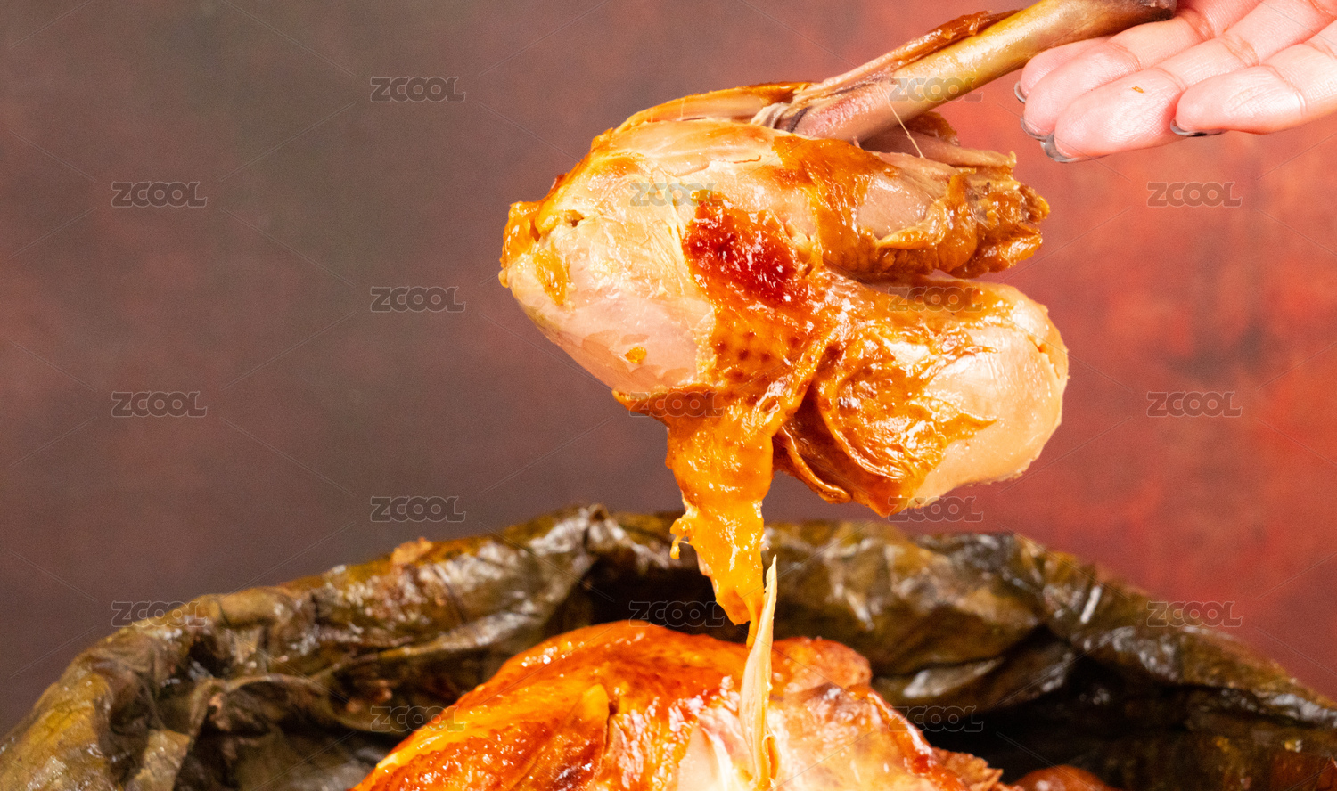 一整只叫花雞特寫