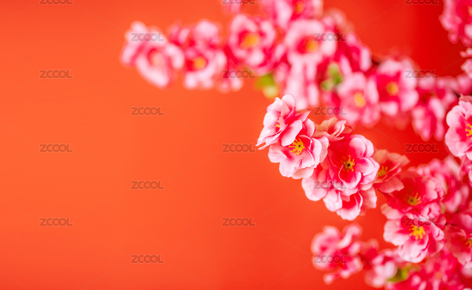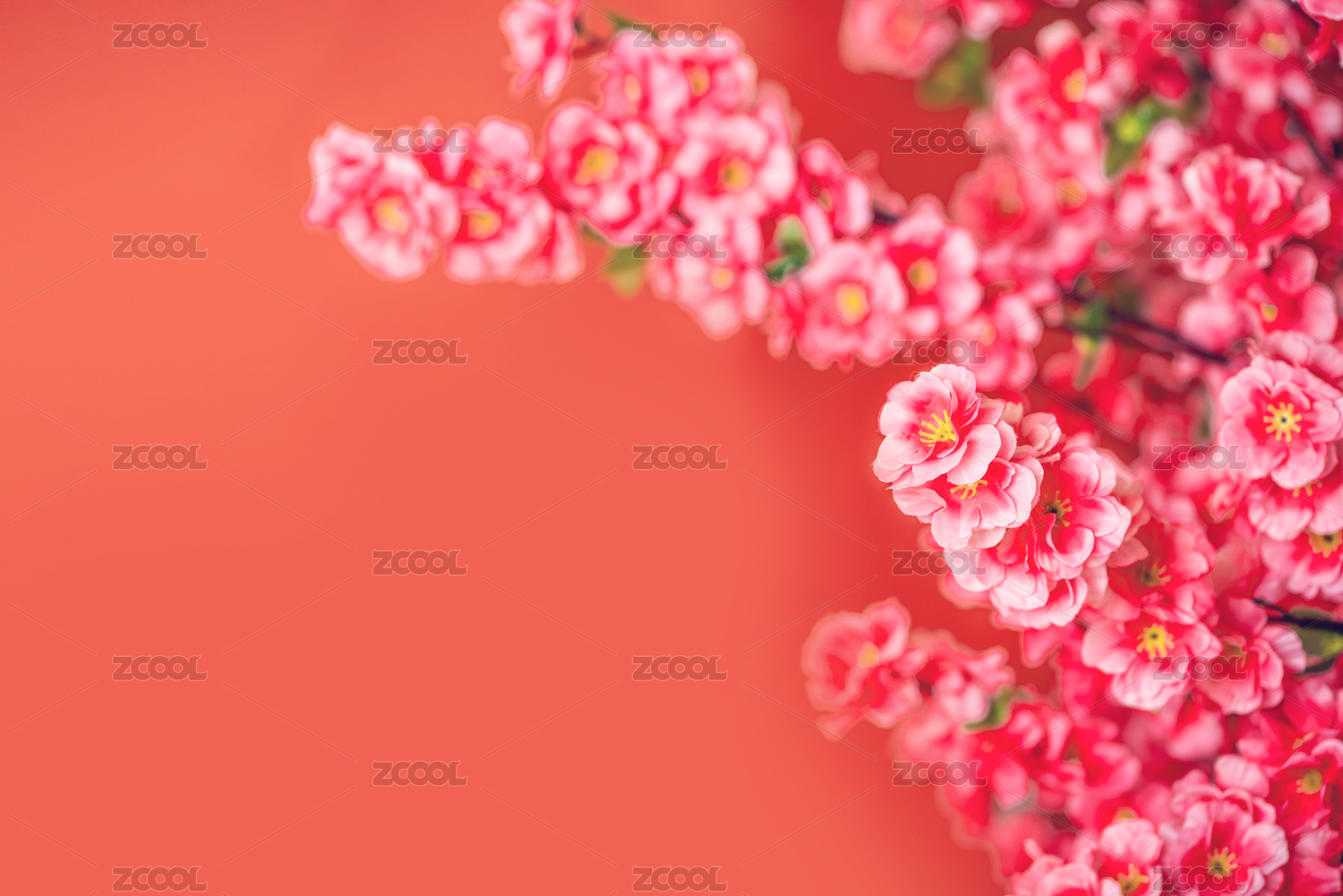春節(jié)桃花樹和福字春節(jié)裝飾背景