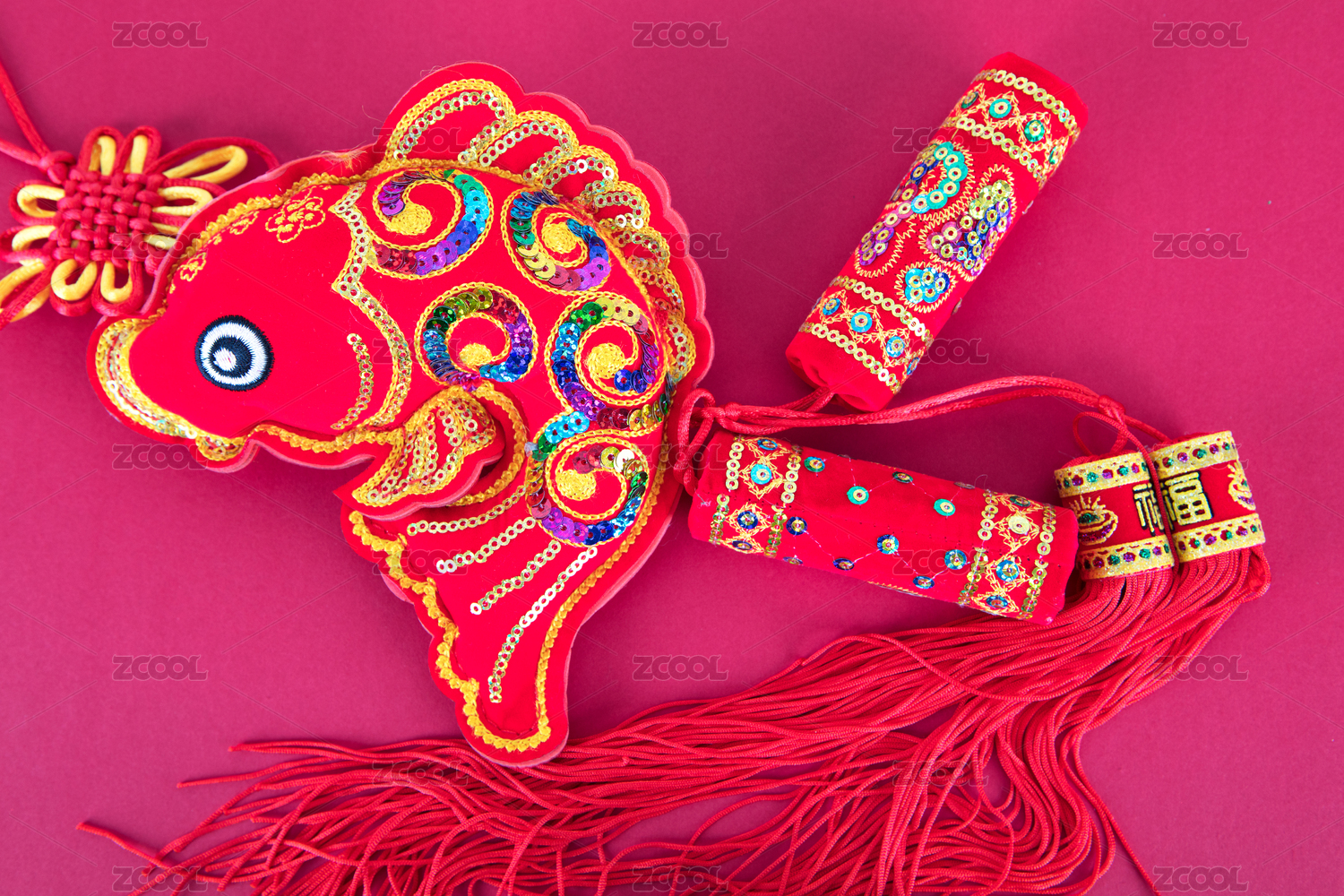 特寫年年有魚中式紅金配色春節(jié)裝飾品