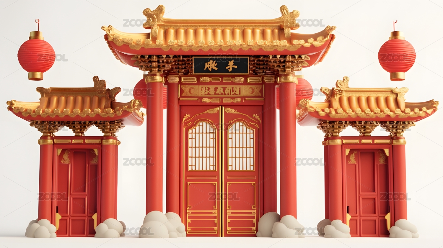 春節(jié)裝飾的中國(guó)風(fēng)門樓牌坊