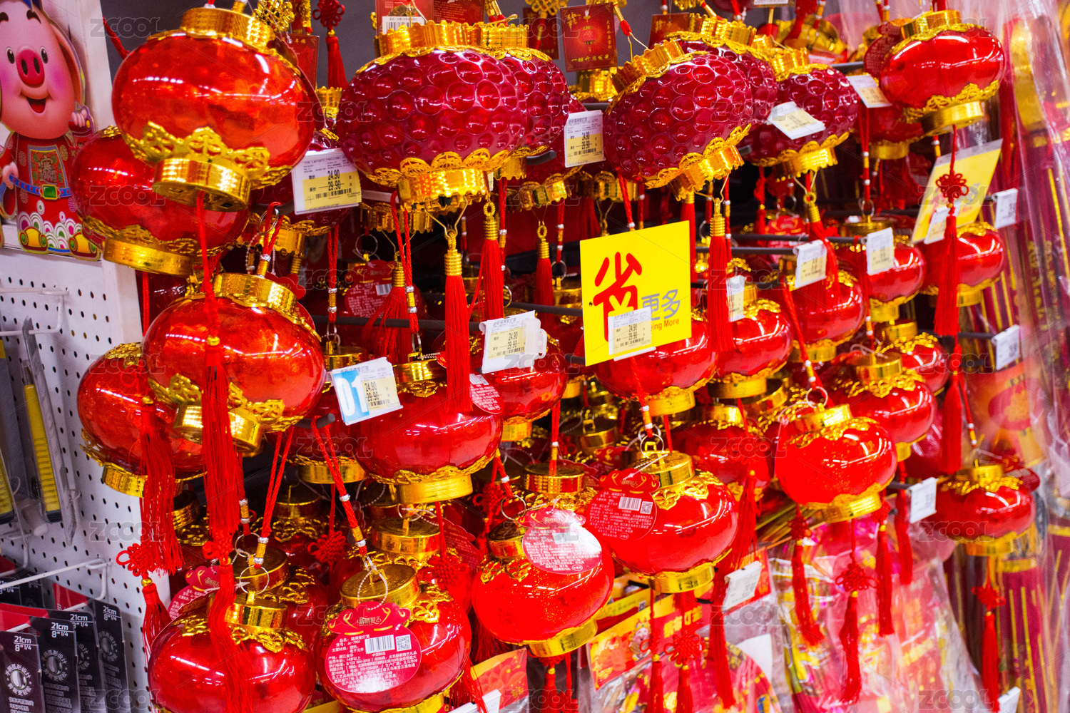 商場(chǎng)中售賣的傳統(tǒng)紅色春節(jié)裝飾品