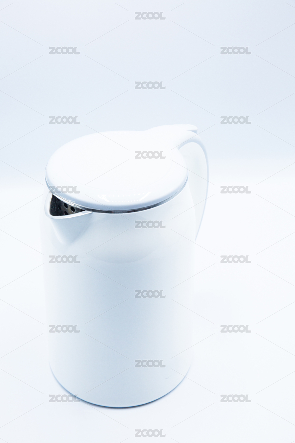 廚房窗口灶臺(tái)藍(lán)色電熱水壺