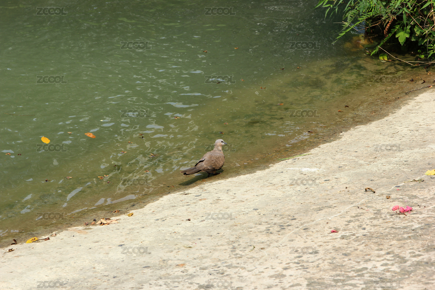 烈日下河岸水邊的斑鳩