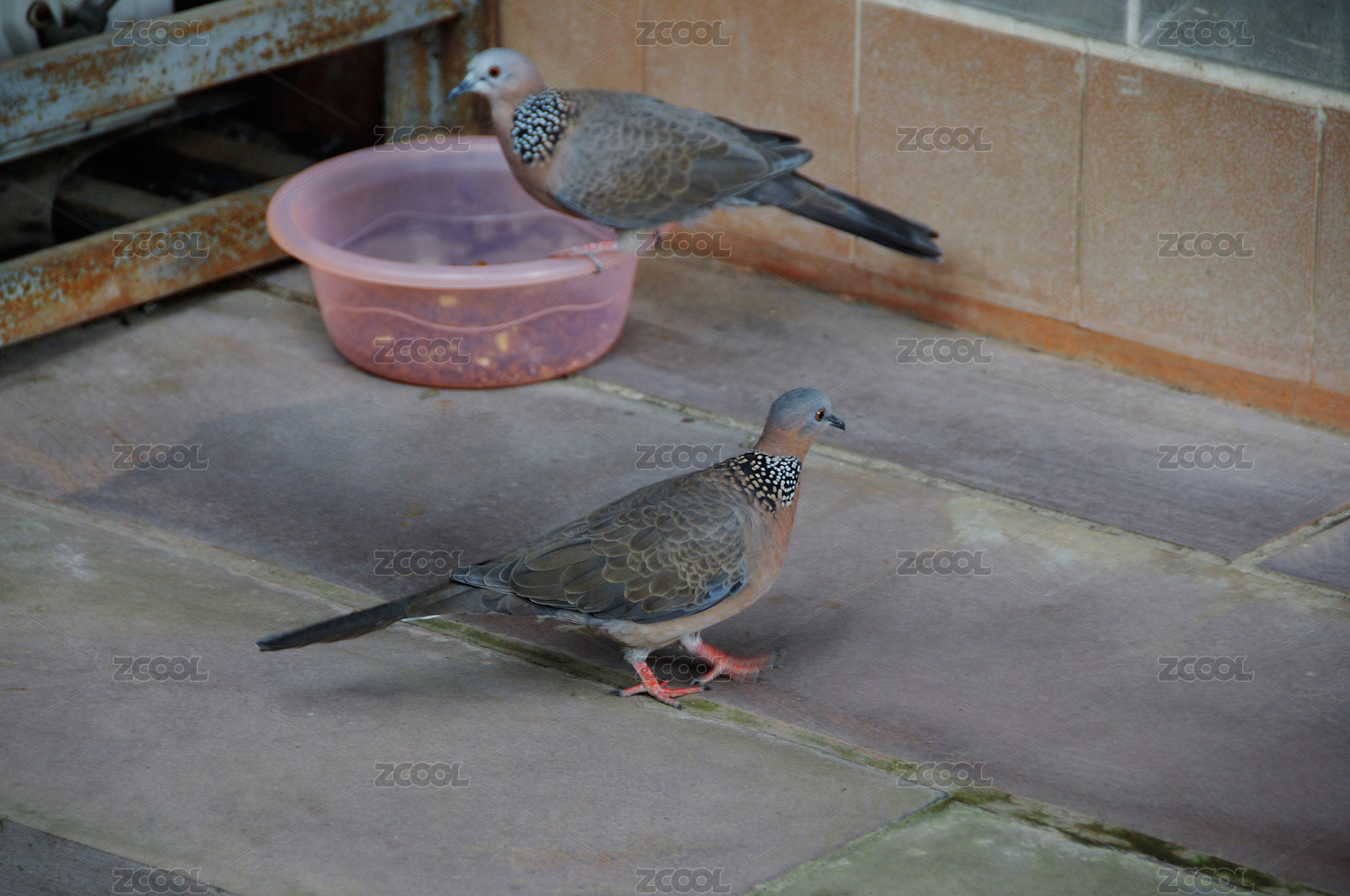公園里的兩只野生斑鳩