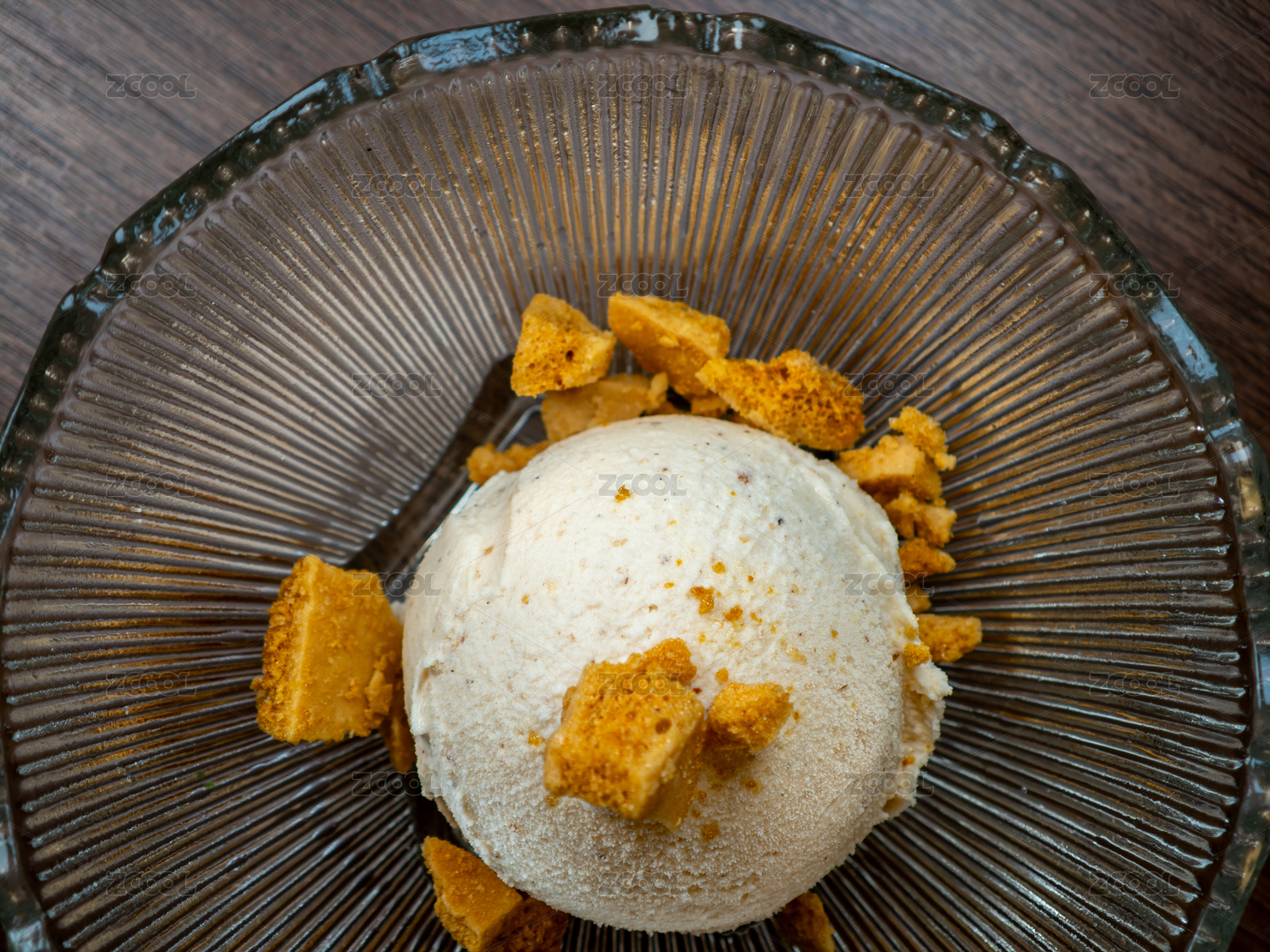 搭配香脆蜂巢糖的白米口味冰淇淋球