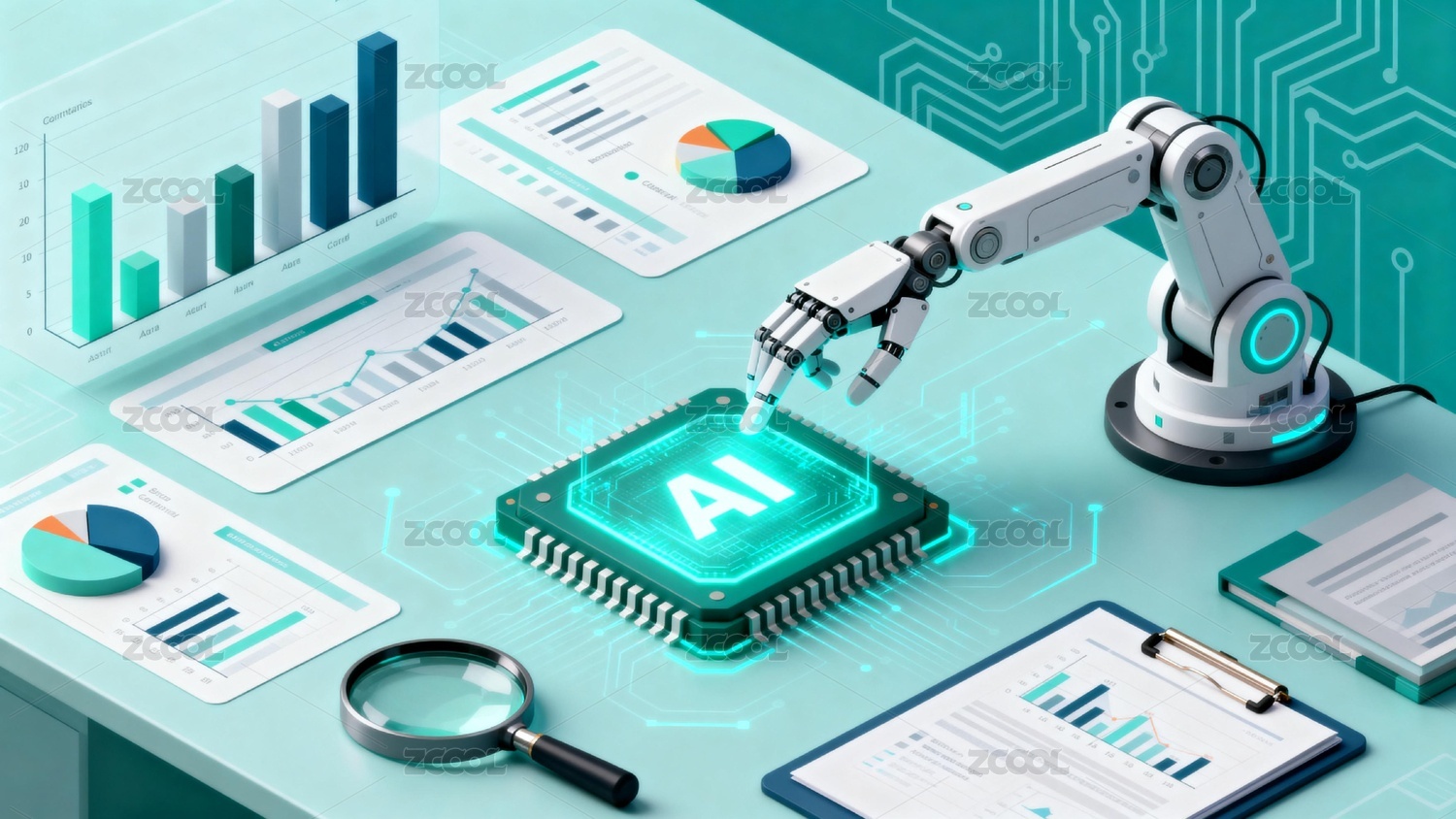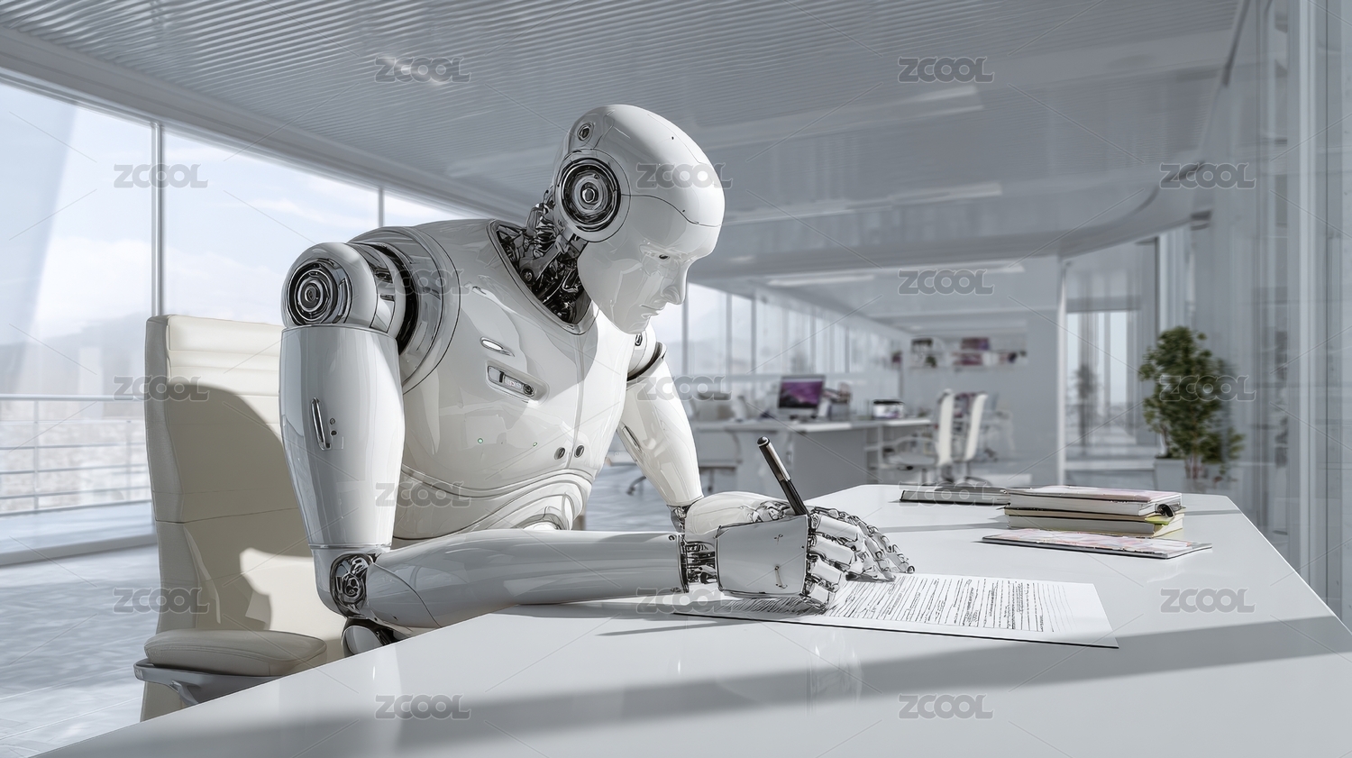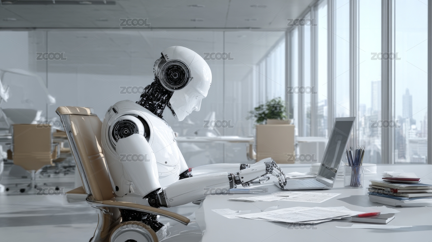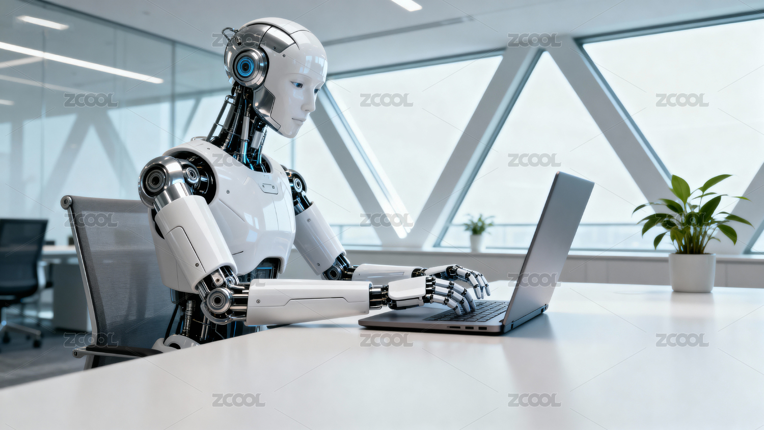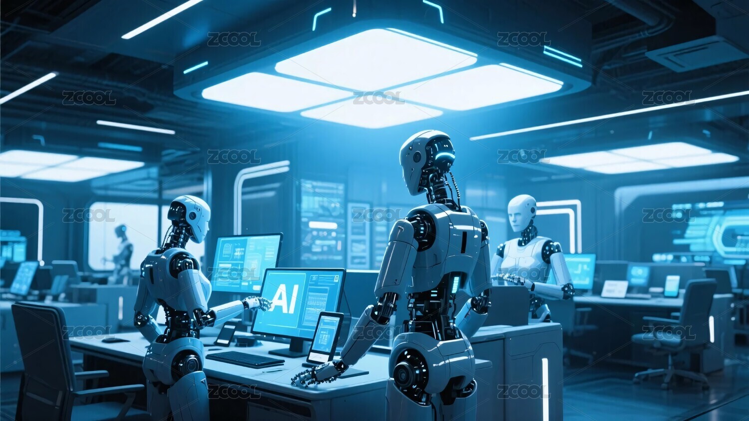 辦公室里的AI機(jī)器人工作辦公場(chǎng)景