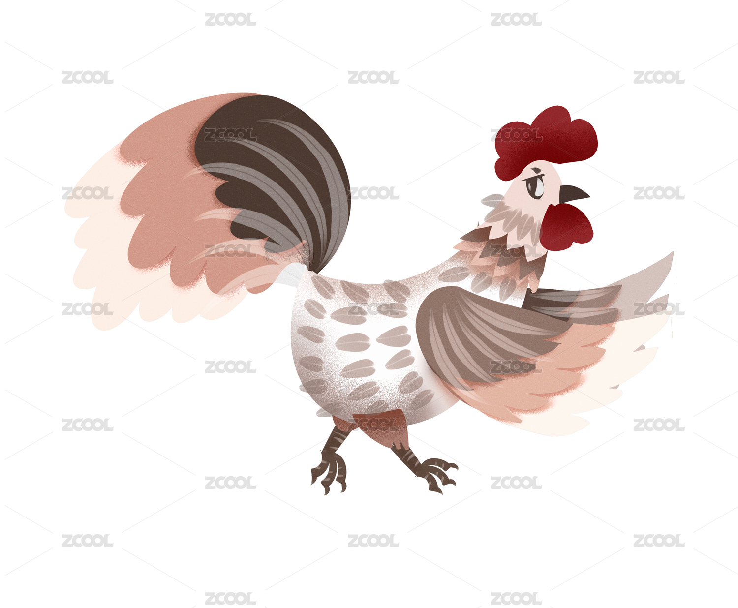 剪紙風(fēng)格一只灰色的大公雞奔跑手拿著東西插畫元素