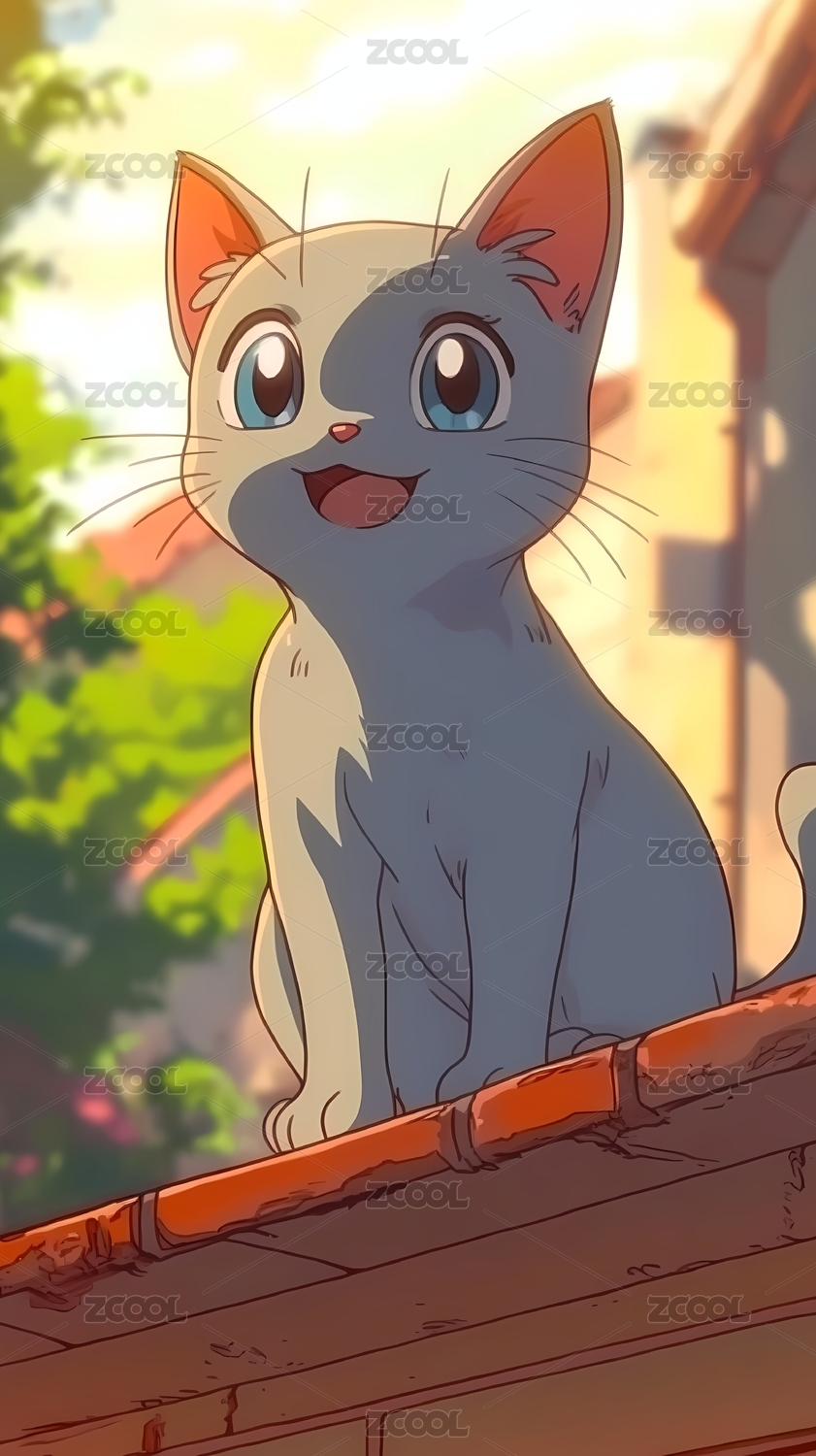 復(fù)古日漫卡通動(dòng)漫動(dòng)物灰色的大眼可愛萌貓咪