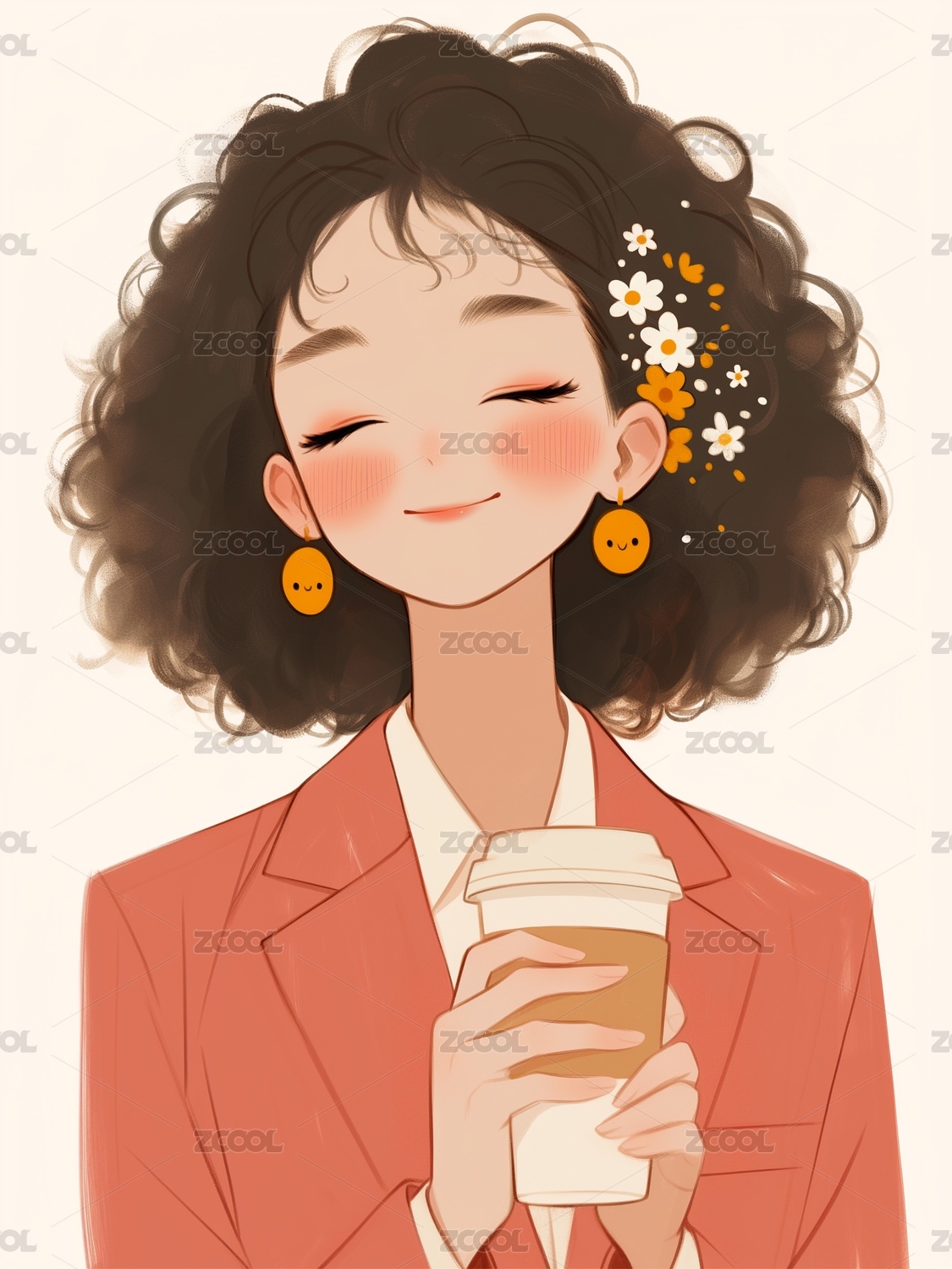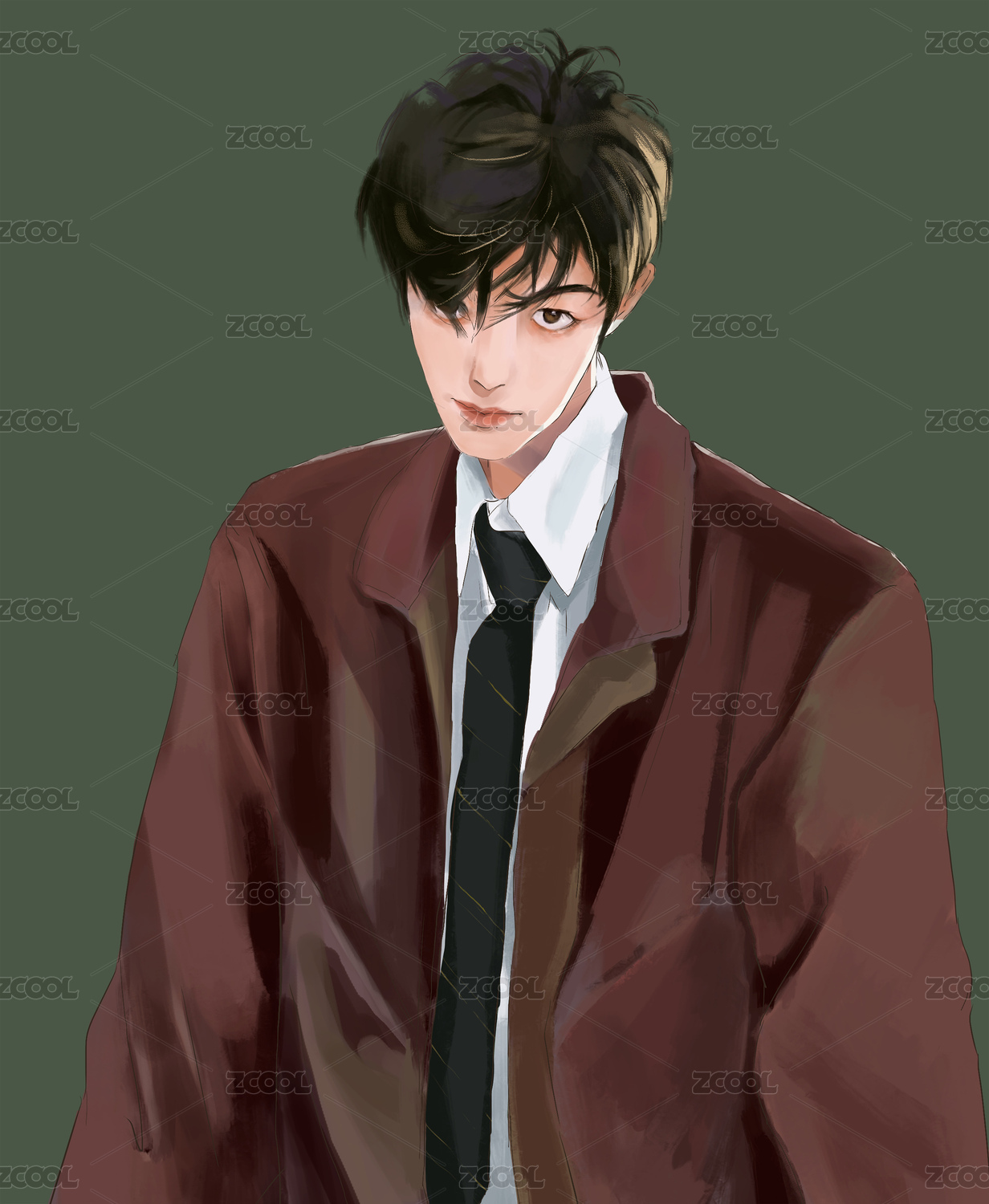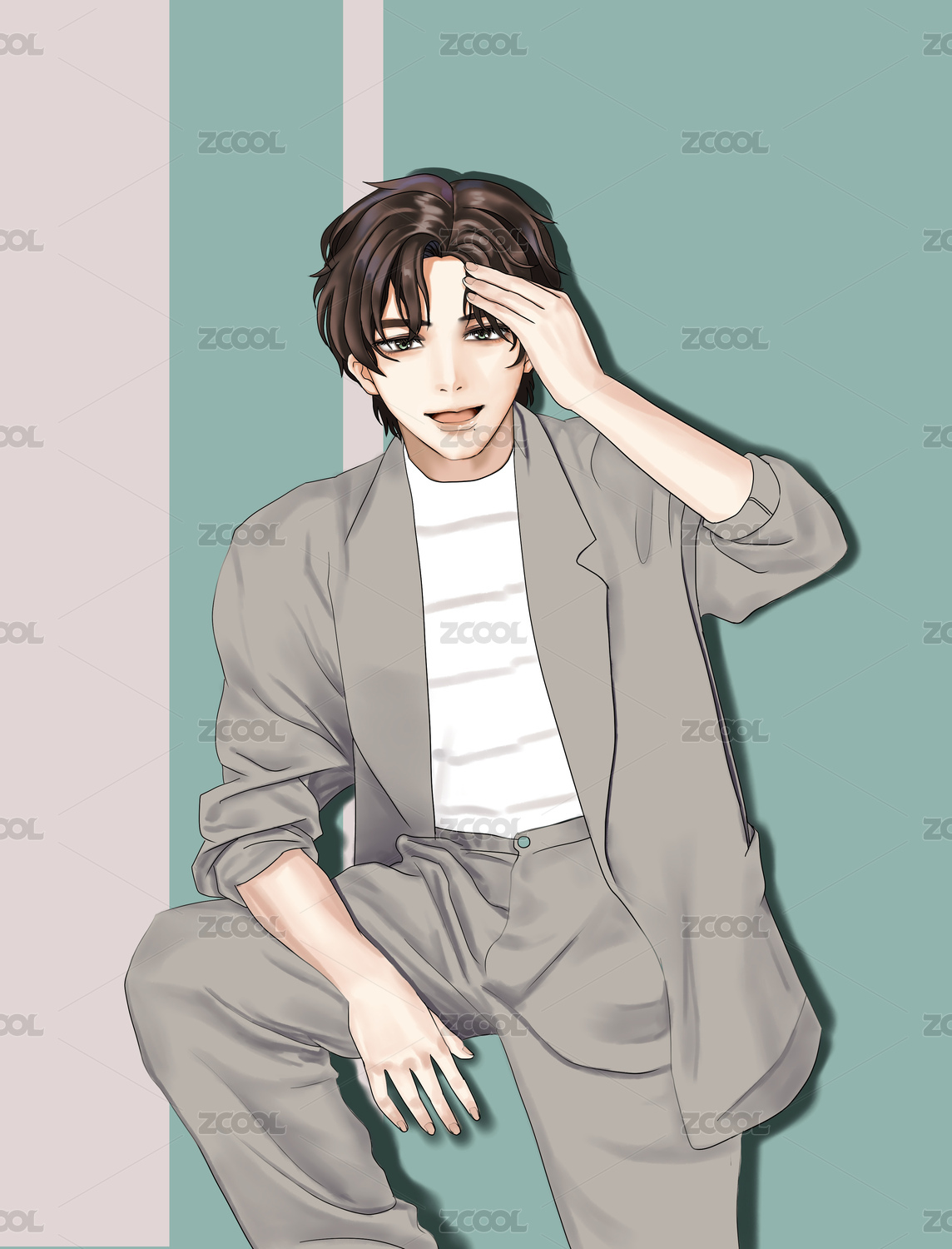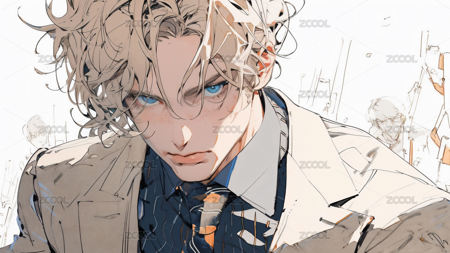 漫畫風襯衫西裝短卷發(fā)帥哥卡通原畫插畫素材