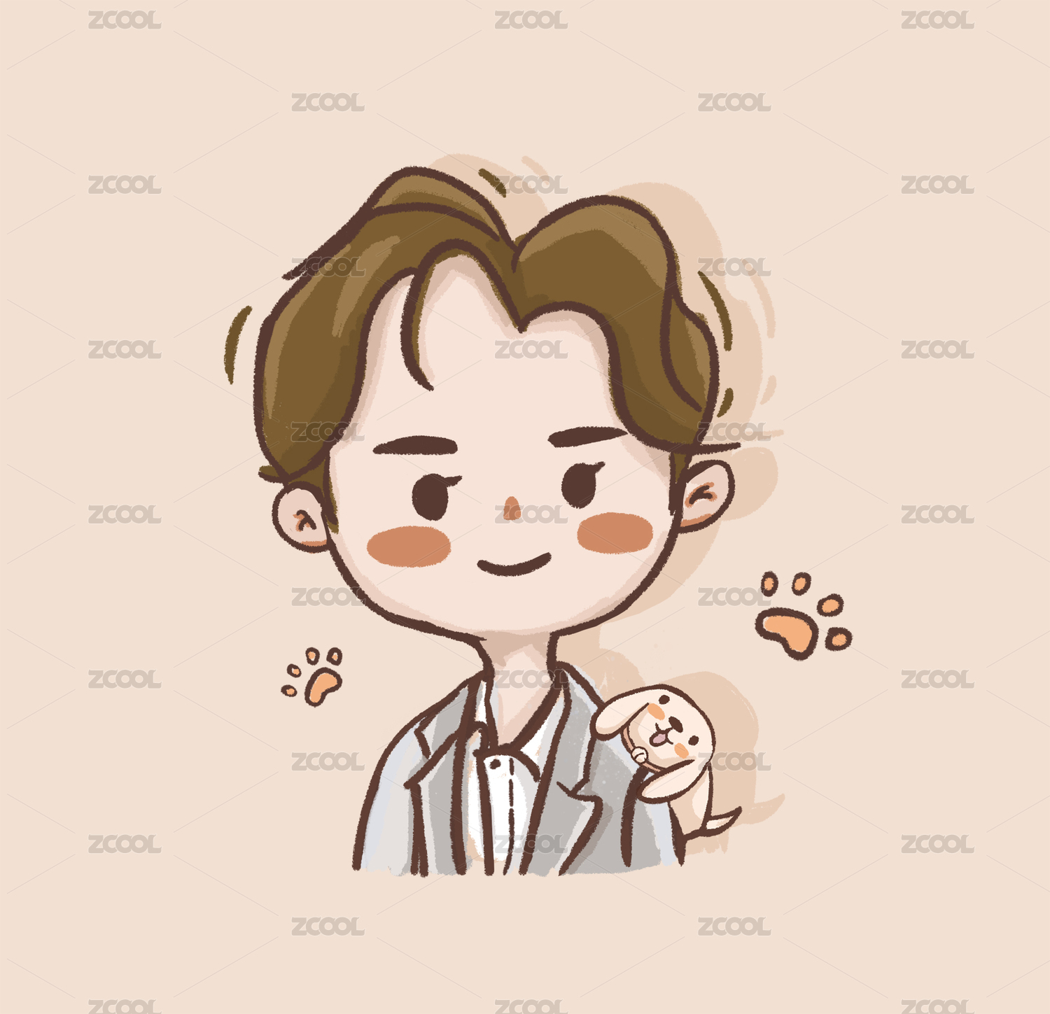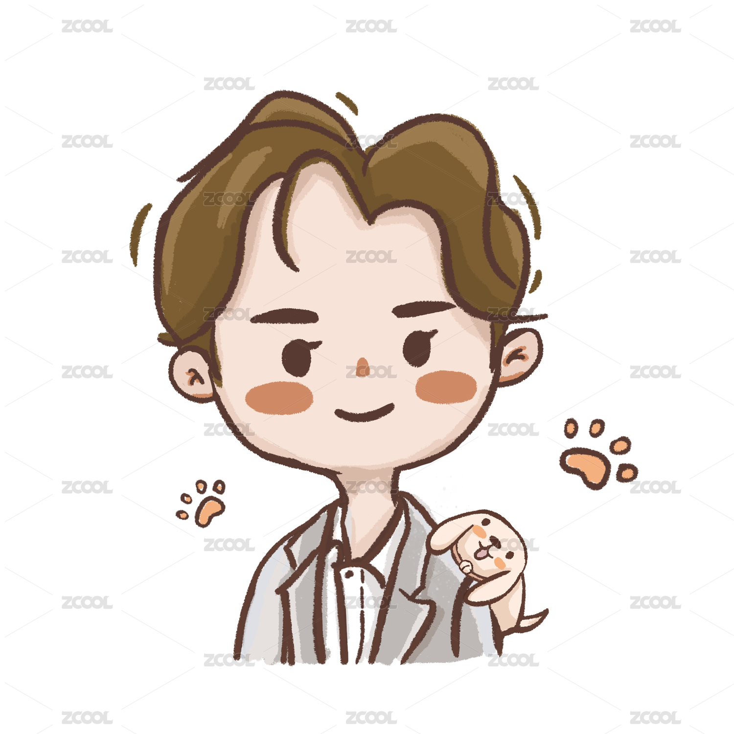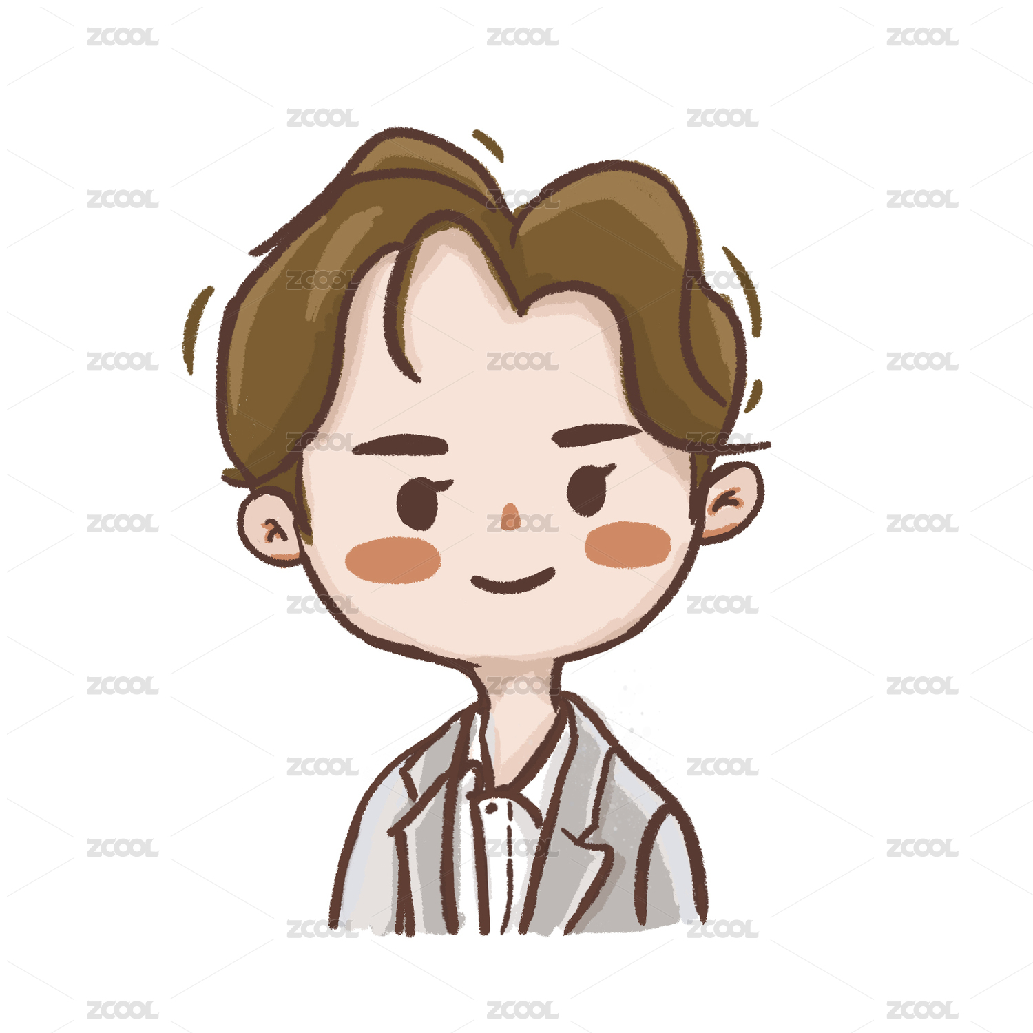 穿西裝的男孩卡通描邊風格頭像