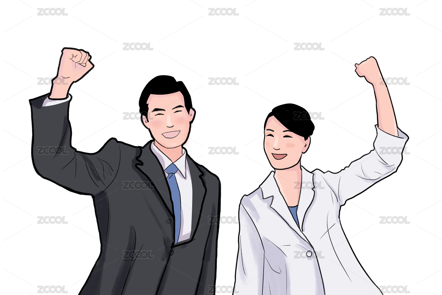 手繪銀行白領西裝男女插畫