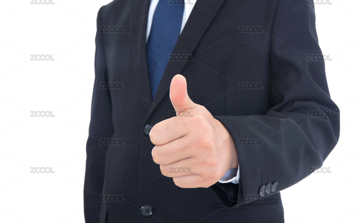 黑色西裝男士伸出大拇指點贊