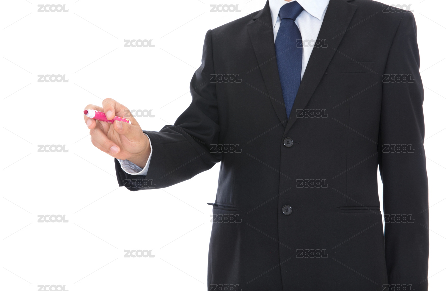 穿著黑西裝的成功人士手拿筆做寫的動作