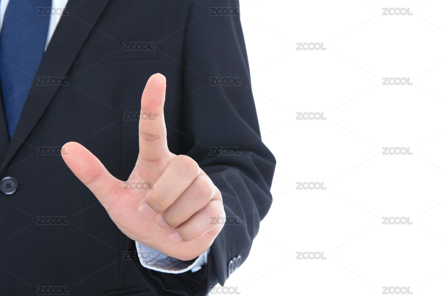 穿著黑色西裝的男士伸手做出八字形的手勢