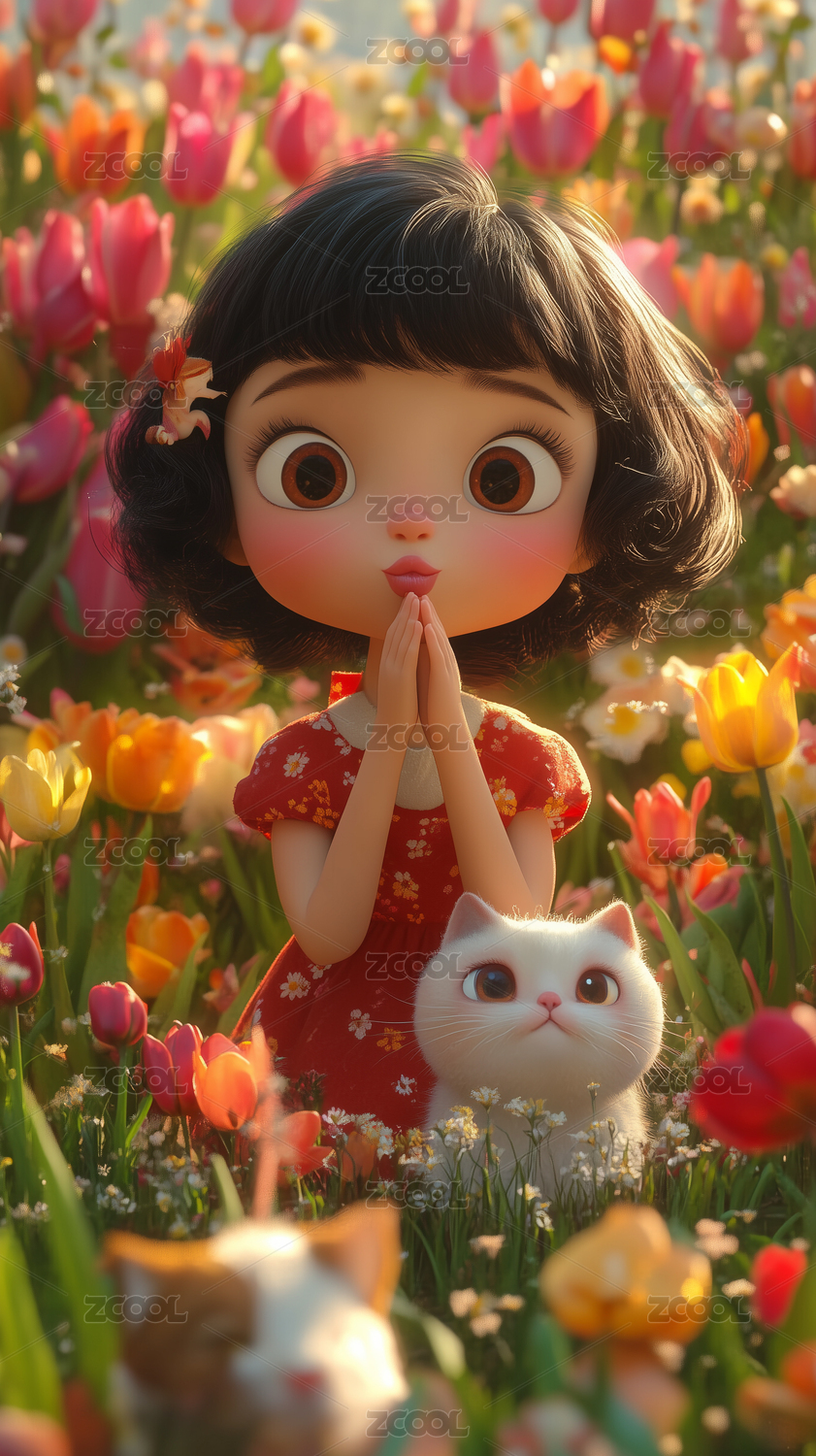 一個(gè)可愛的 3D 卡通女孩在吹口哨超唯美