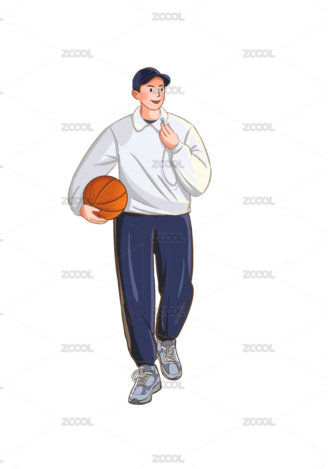 戴鴨舌帽的輕男子手拿籃球吹哨子