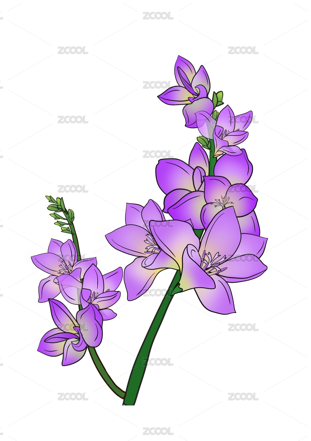 手繪藍(lán)紫粉飛燕草