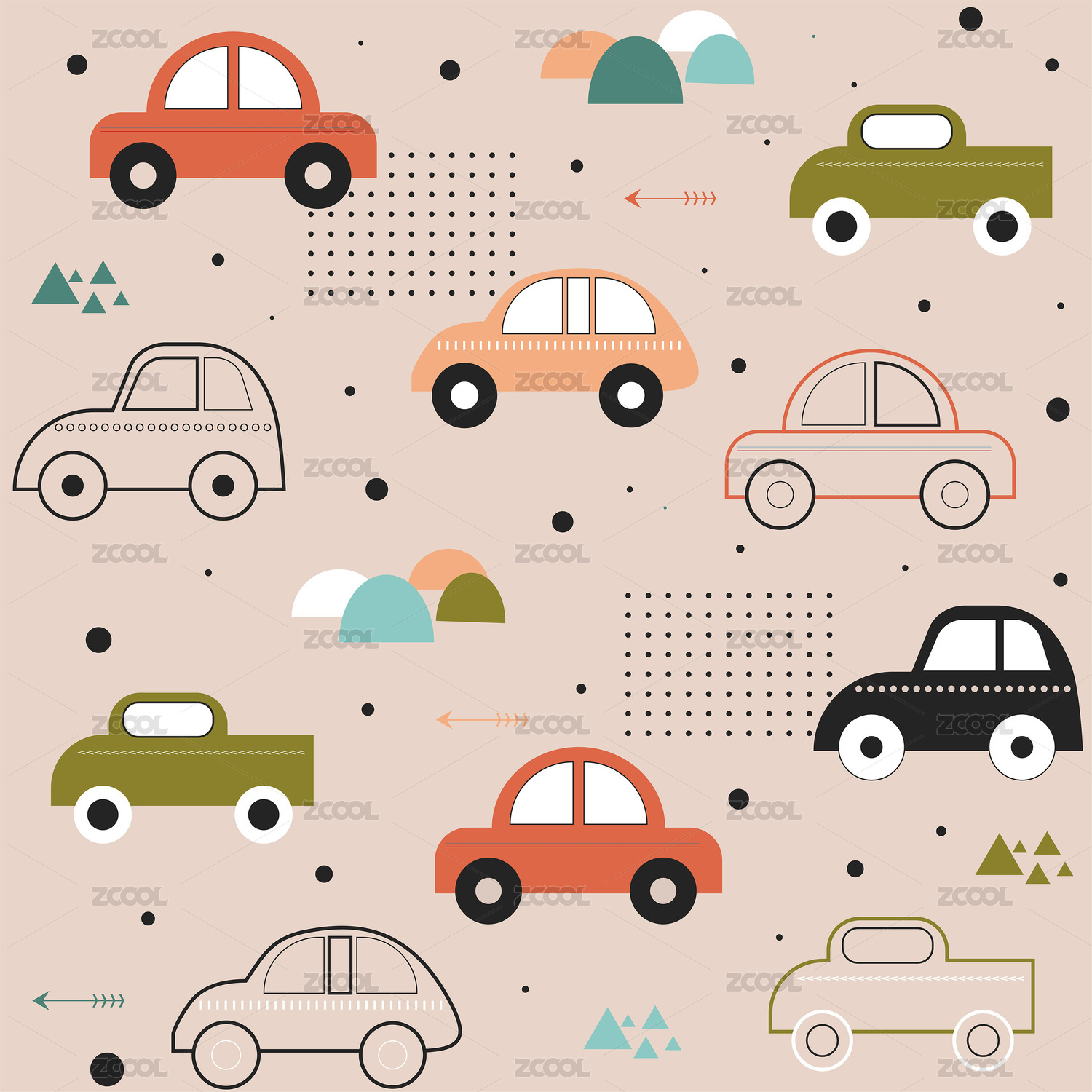 手繪卡通兒童汽車(chē)背景圖案