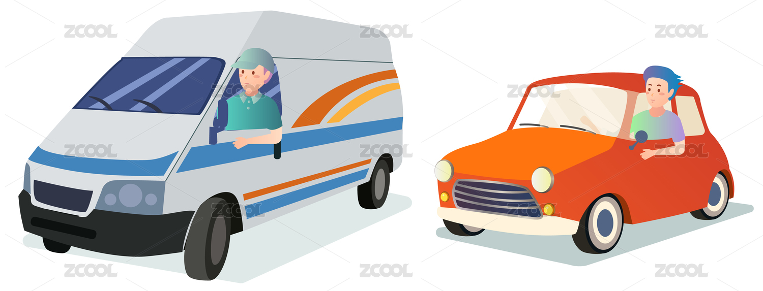 貨運(yùn)卡車(chē)小汽車(chē) 司機(jī)矢量素材