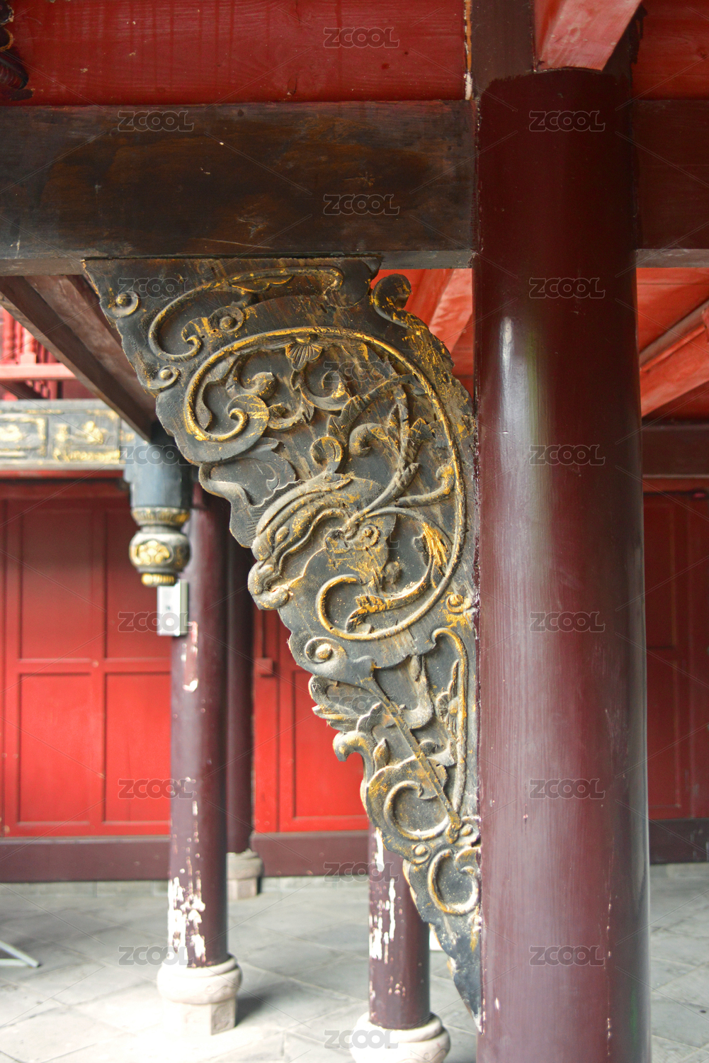 四川元通古鎮(zhèn)廣東會館 木柱雀替木雕
