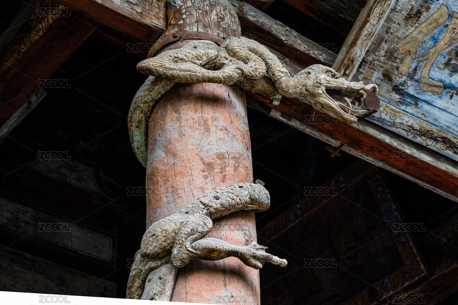 中國山西省太原市晉祠博物館圣母殿纏龍木柱