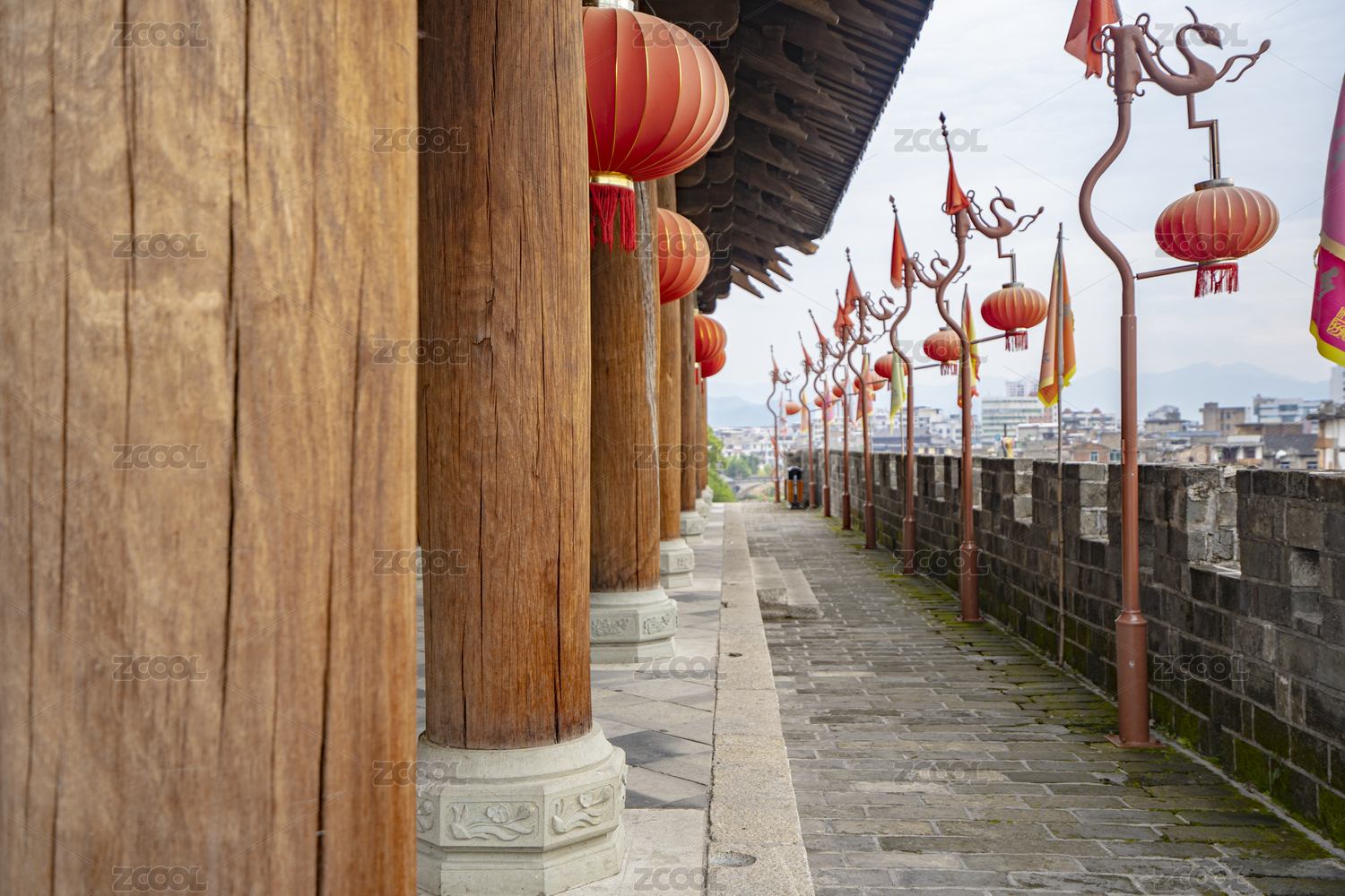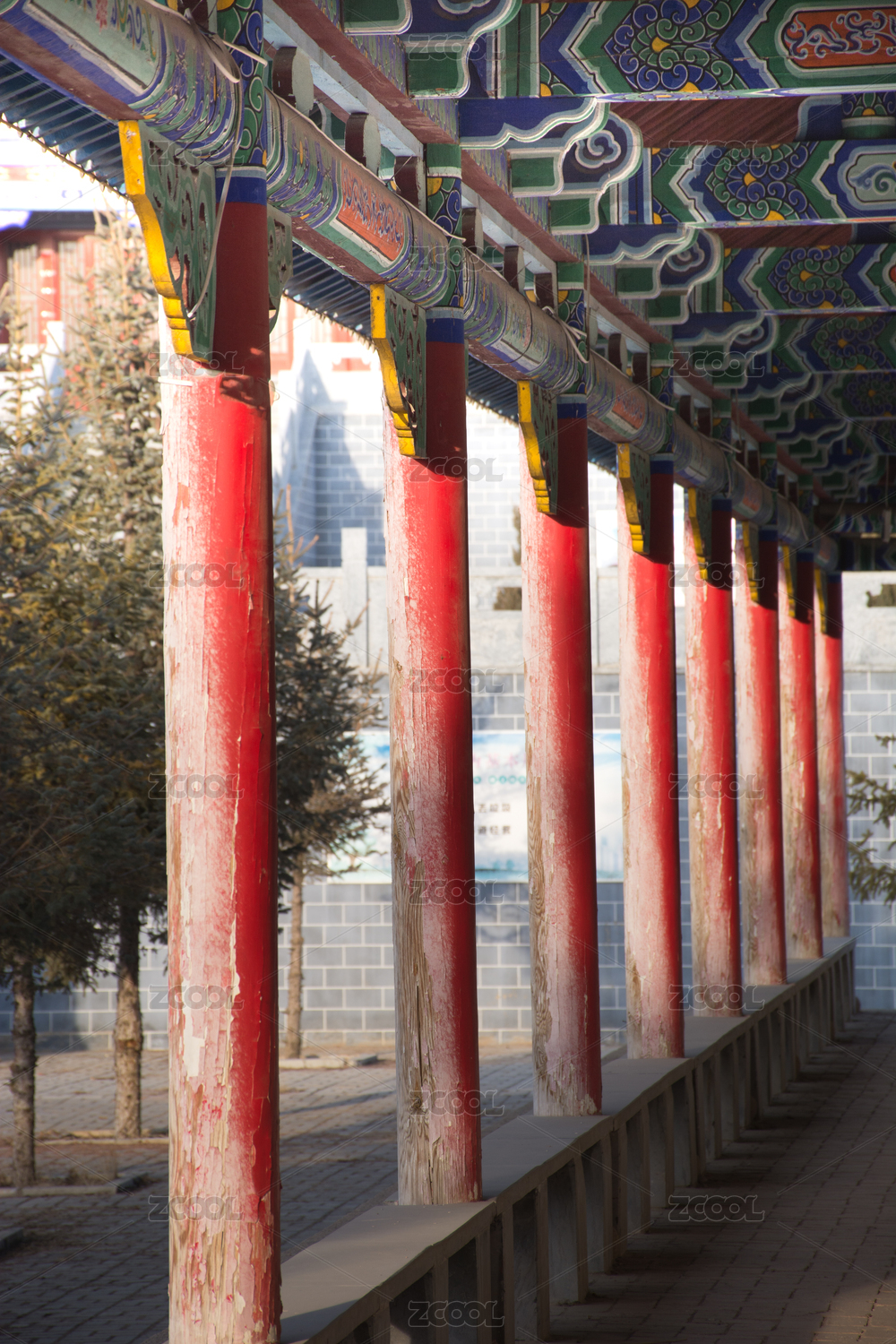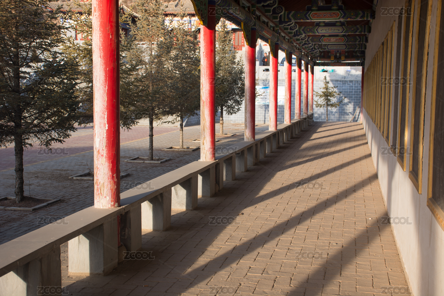 成都彭州丹景山 陸游祠走廊木柱和欄桿