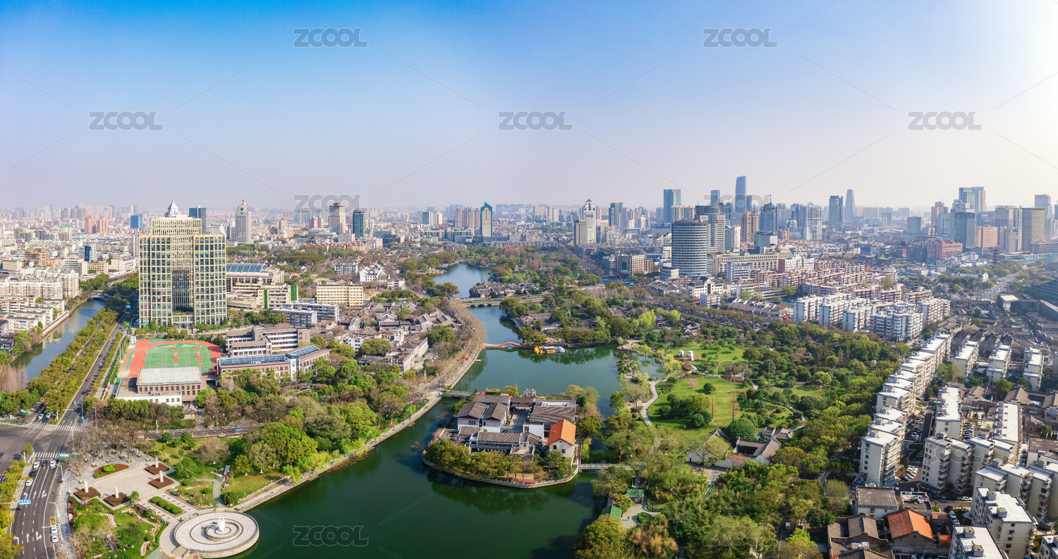 浙江寧波海曙區(qū)月湖公園航拍全景圖