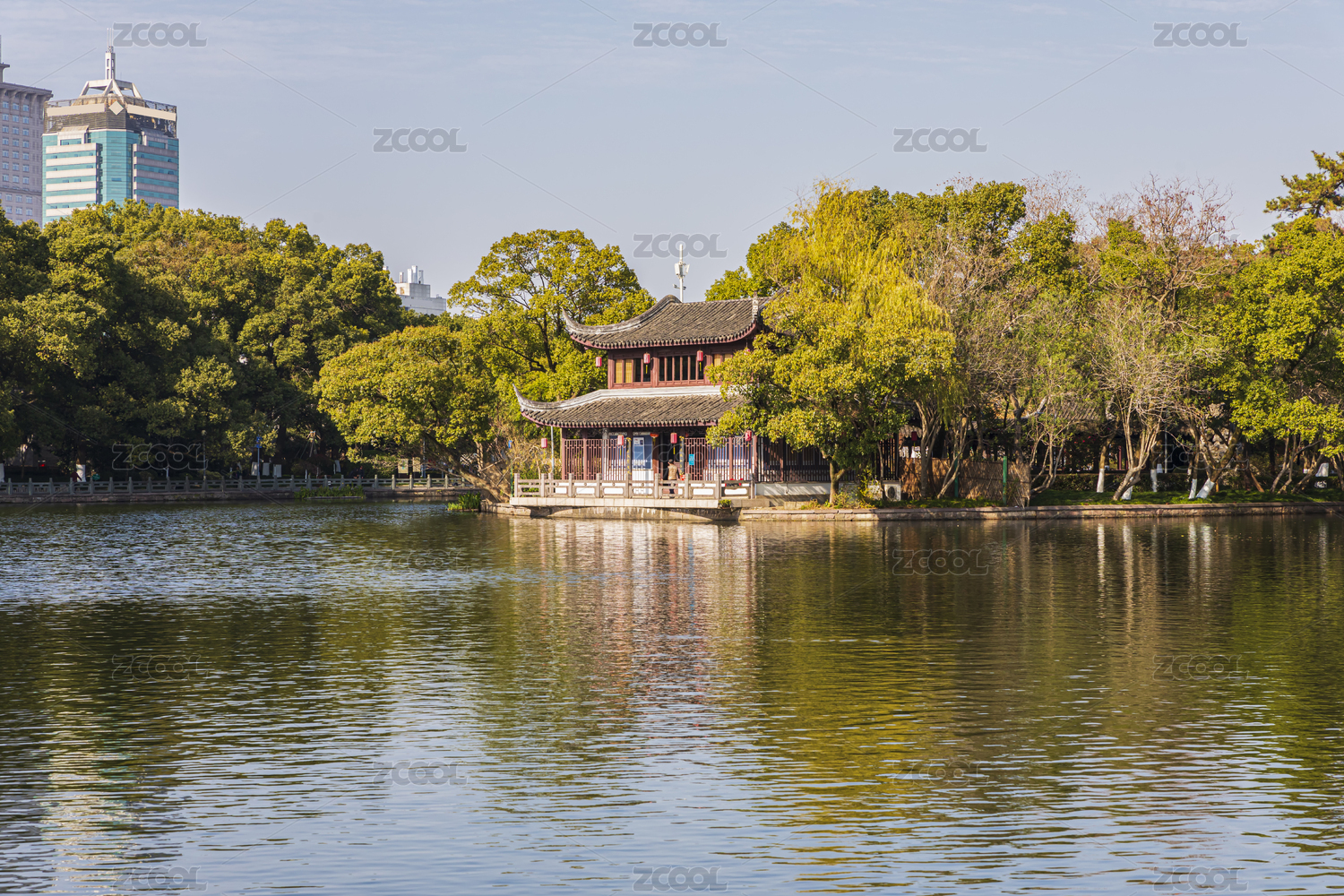 浙江寧波海曙區(qū)月湖公園超然閣風(fēng)光圖