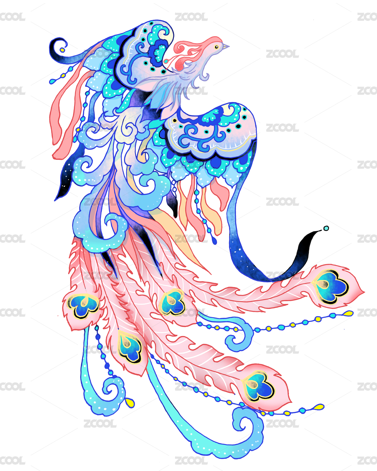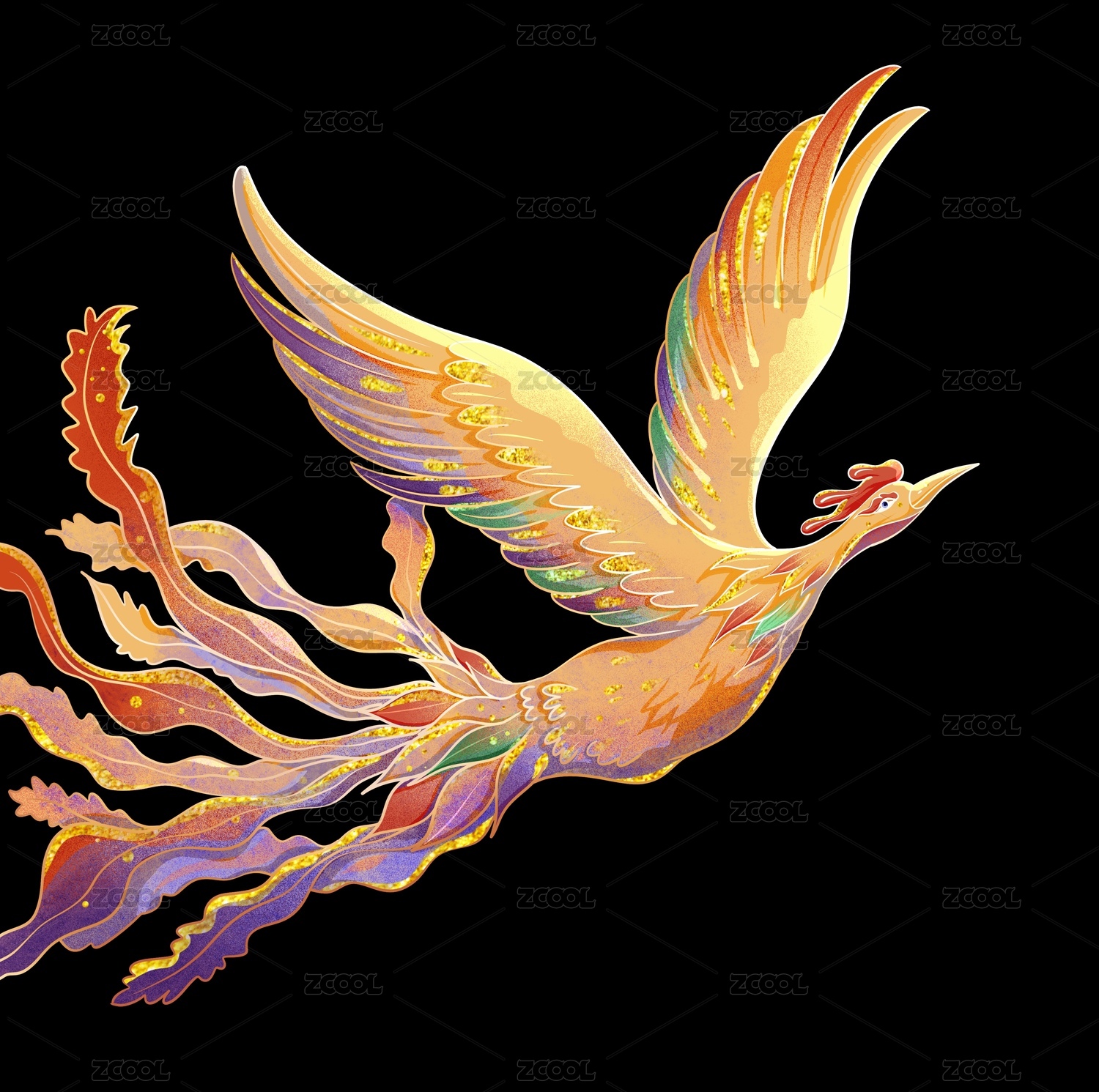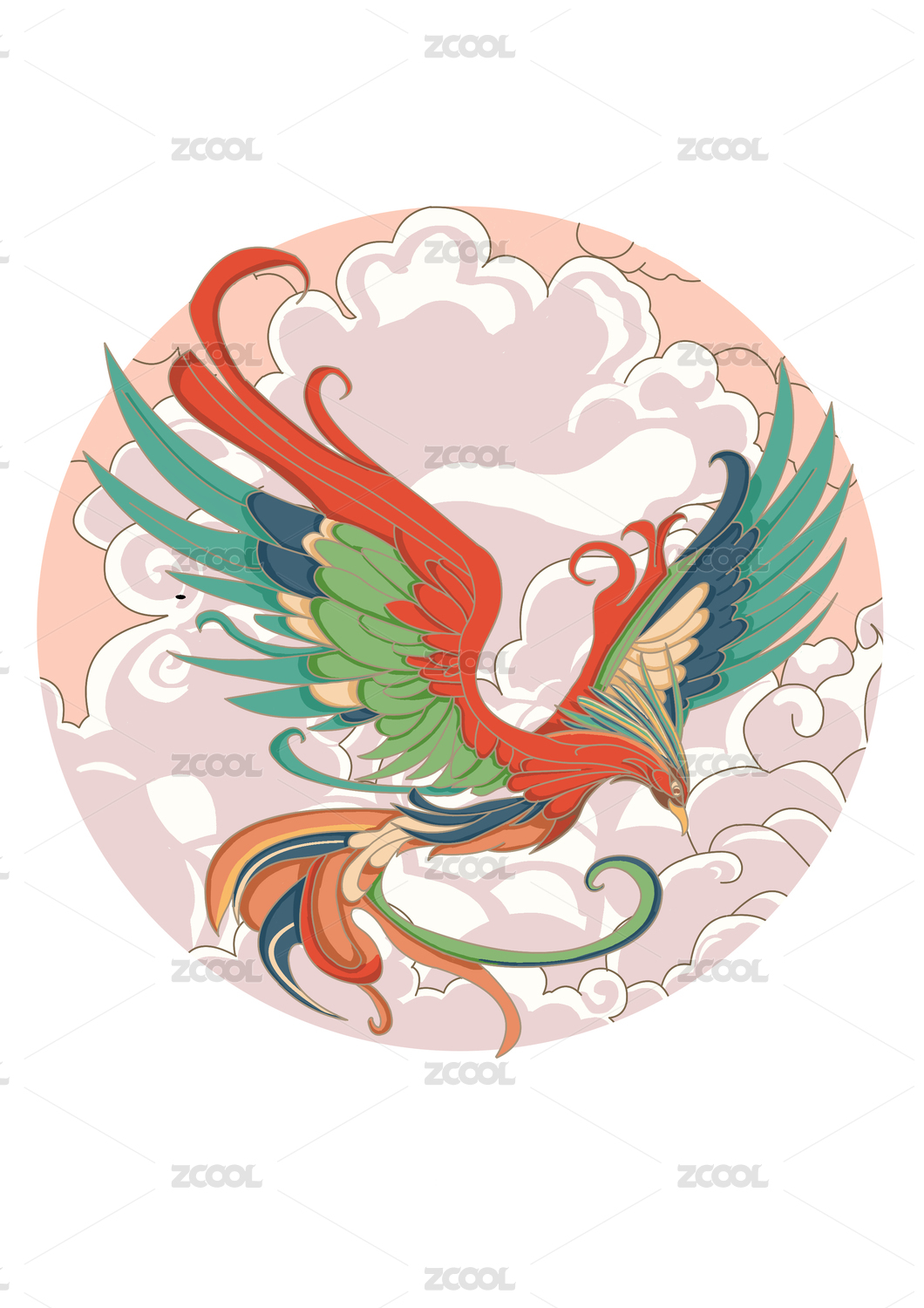 手繪中國風(fēng)傳統(tǒng)彩色鳳凰插畫