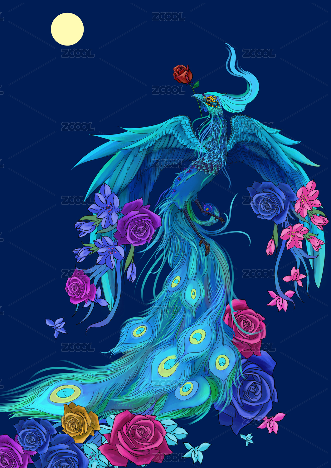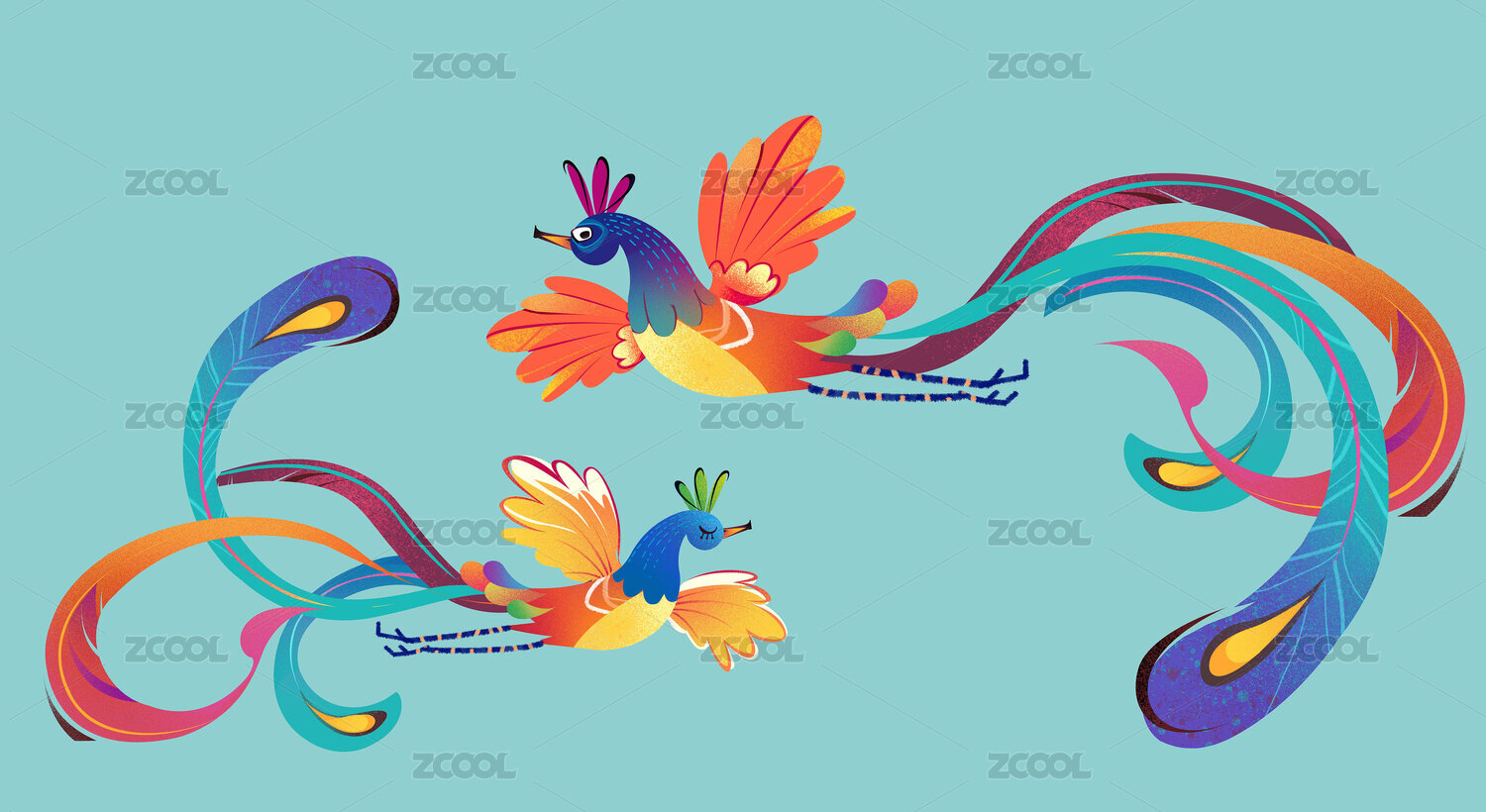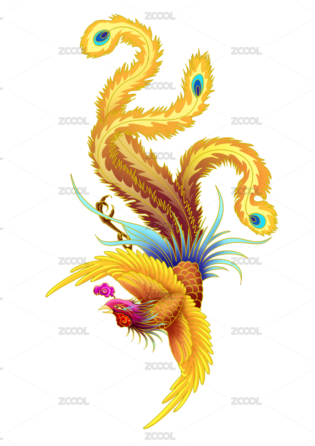 手繪中國風(fēng)傳統(tǒng)彩色鳳凰插畫