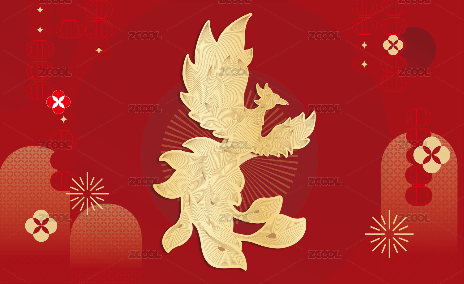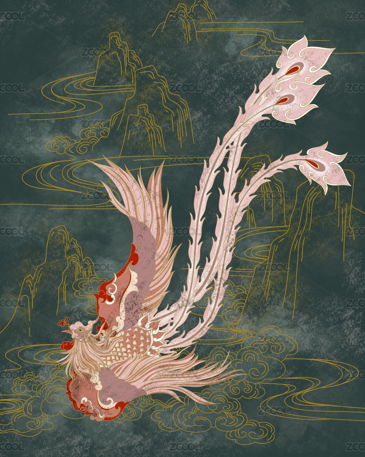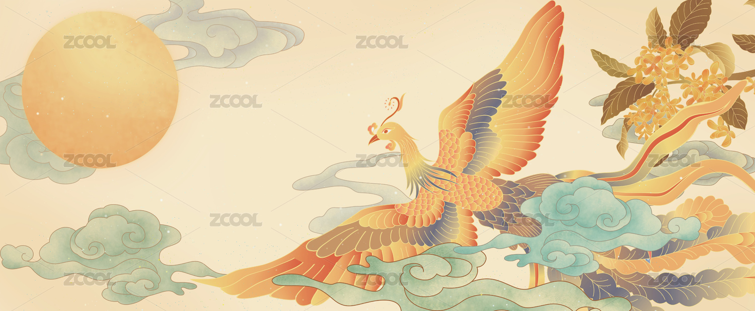 傳統(tǒng)新藝術(shù)風(fēng)格鳳凰插畫海報(bào)背景