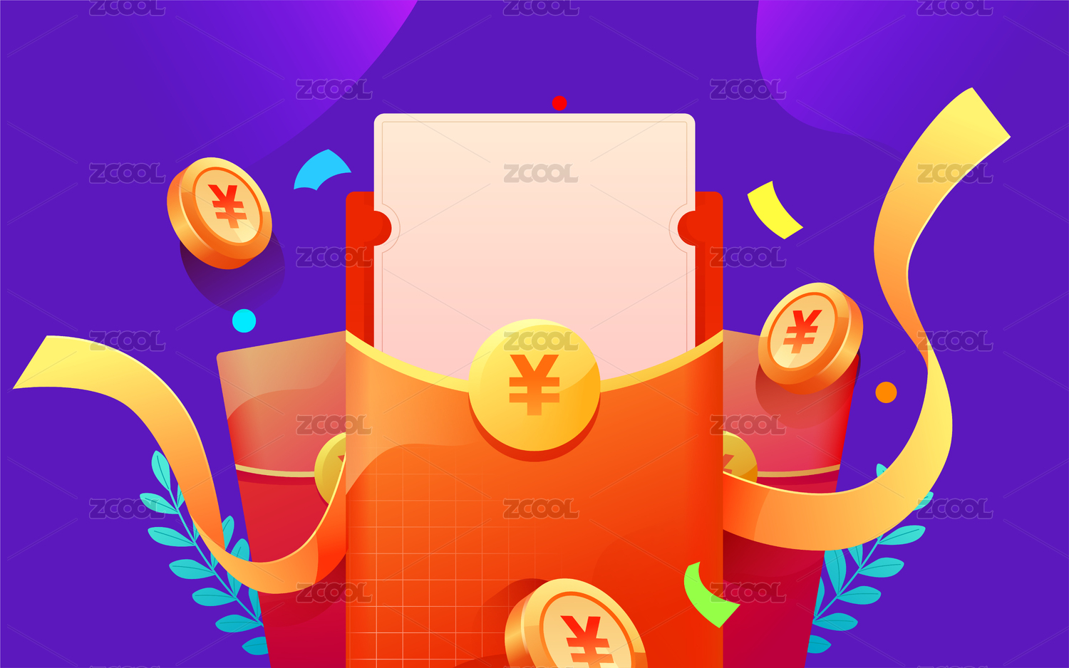 打開的紅包運營活動矢量插畫素材