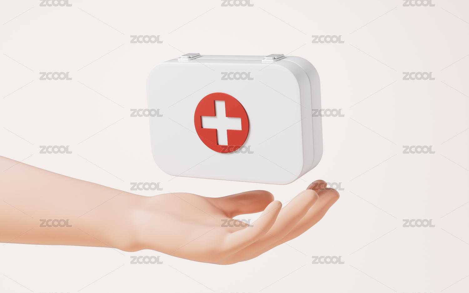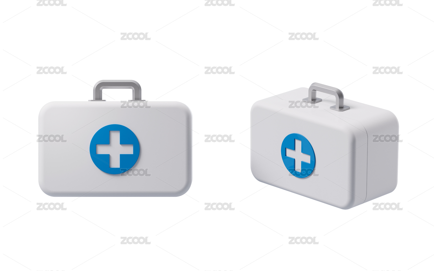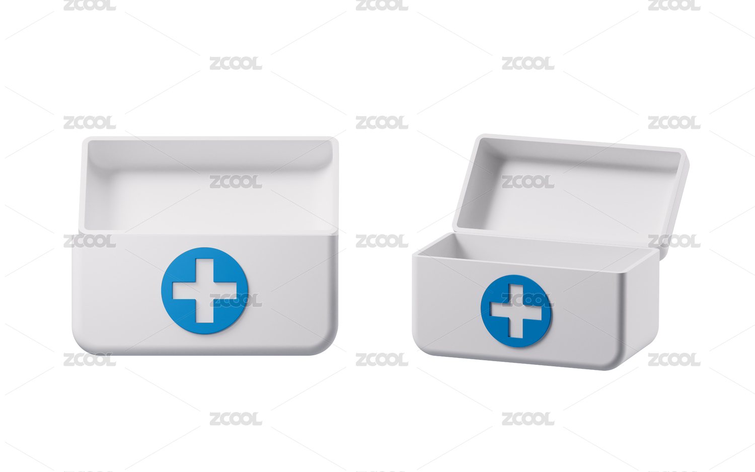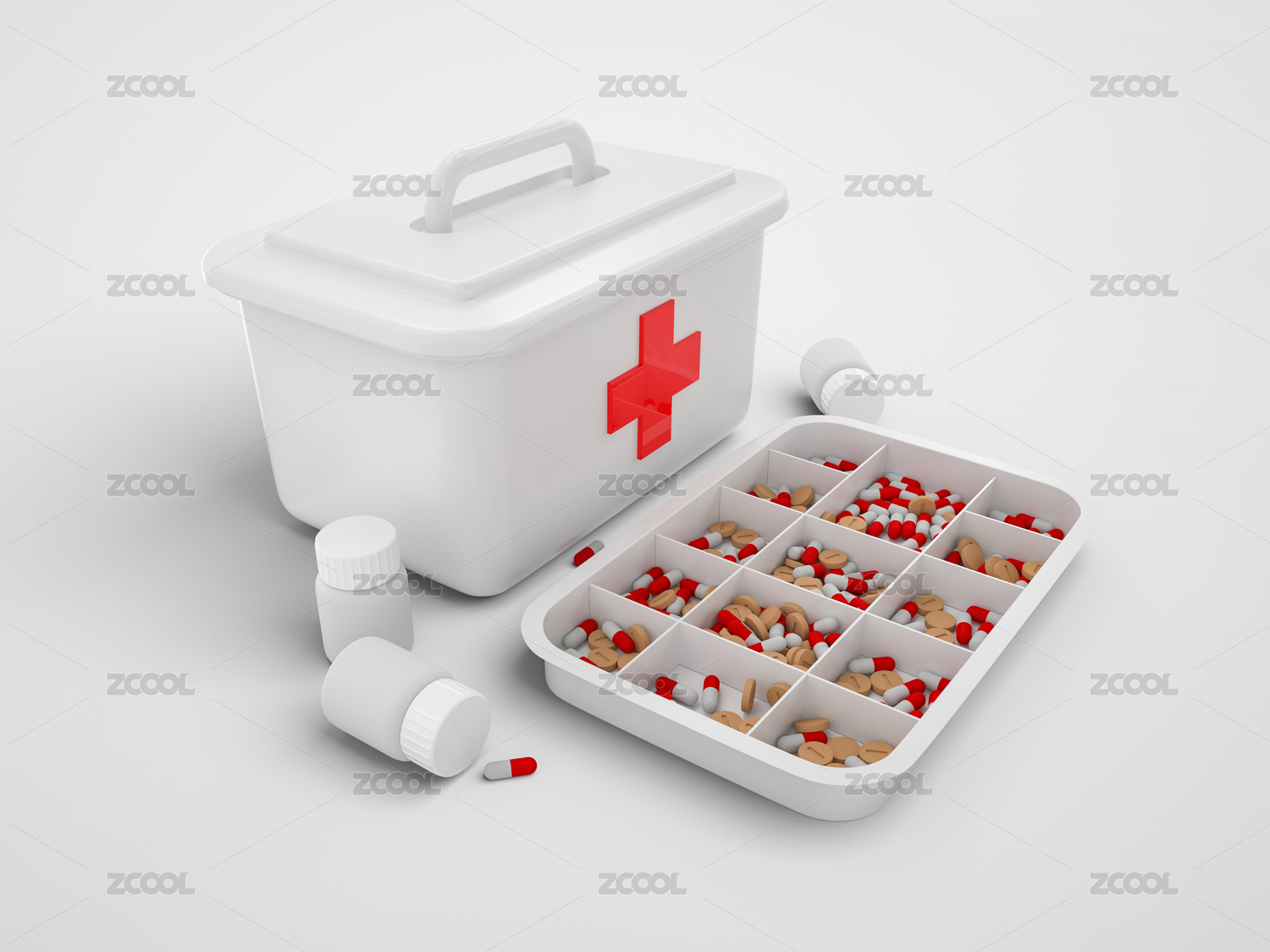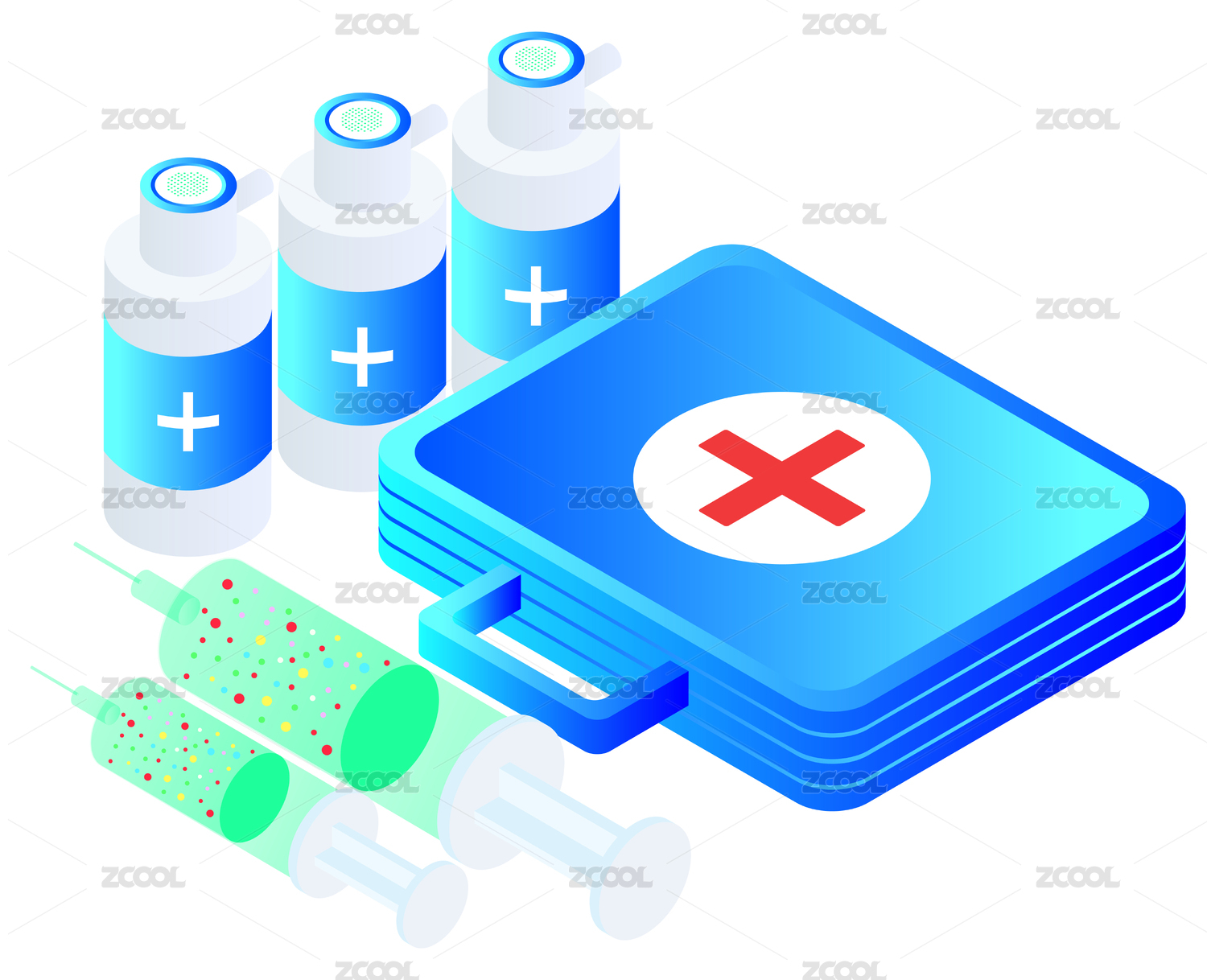 白色醫(yī)藥箱醫(yī)用酒精瓶和5個口罩