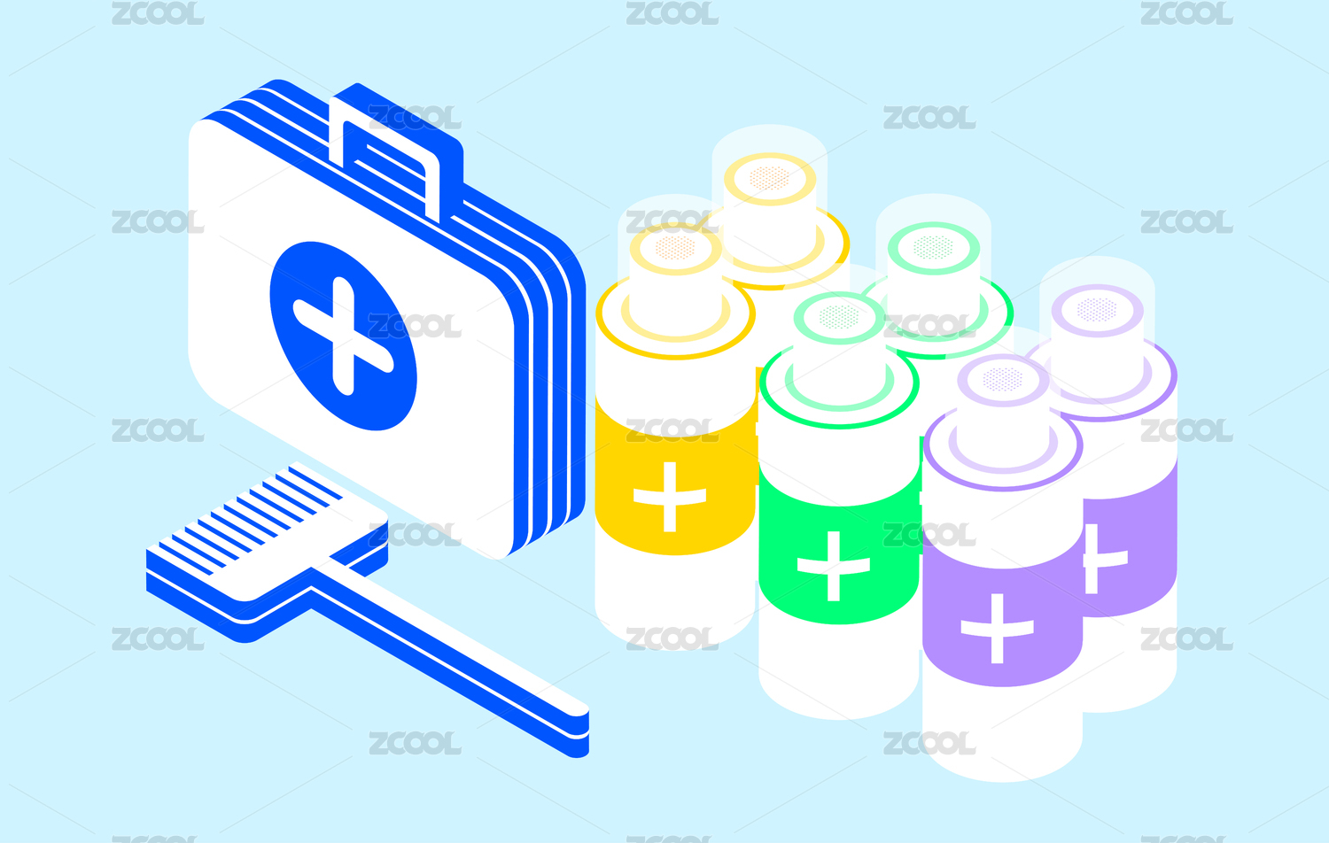 醫(yī)療藥品和醫(yī)藥箱矢量插畫