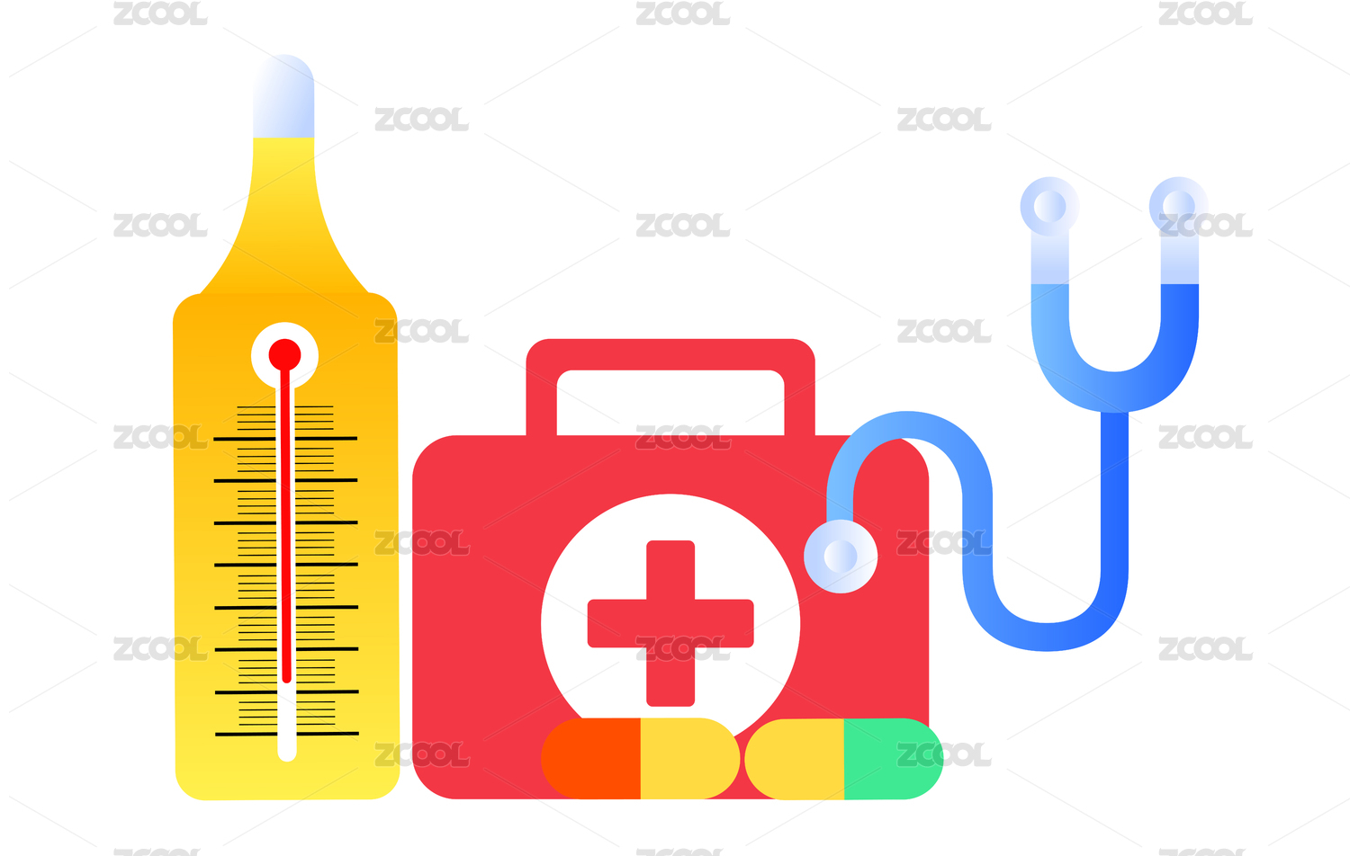 溫度計聽診器醫(yī)藥箱醫(yī)用器械矢量插畫
