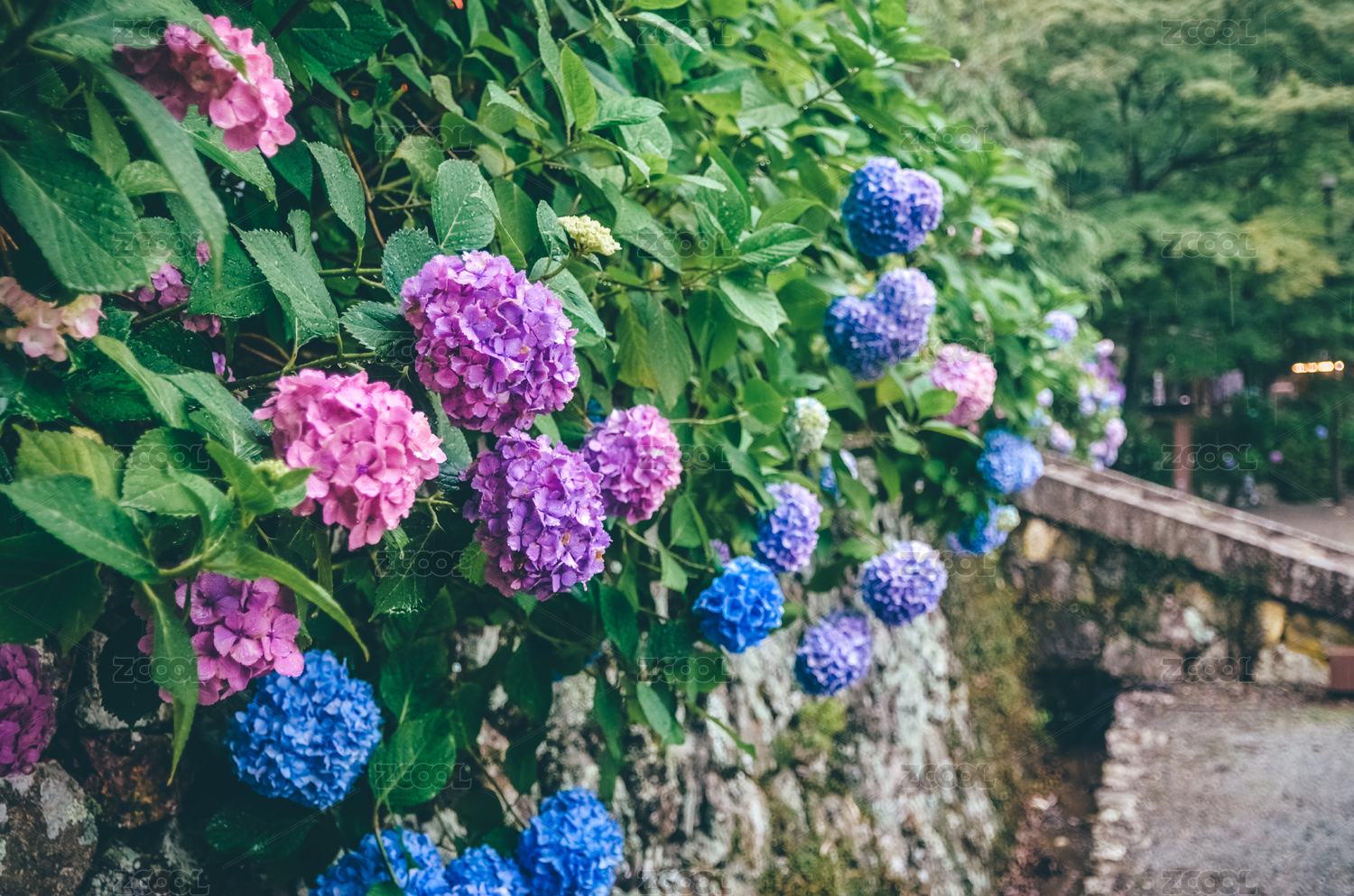 開著紫陽花的日式庭院一角