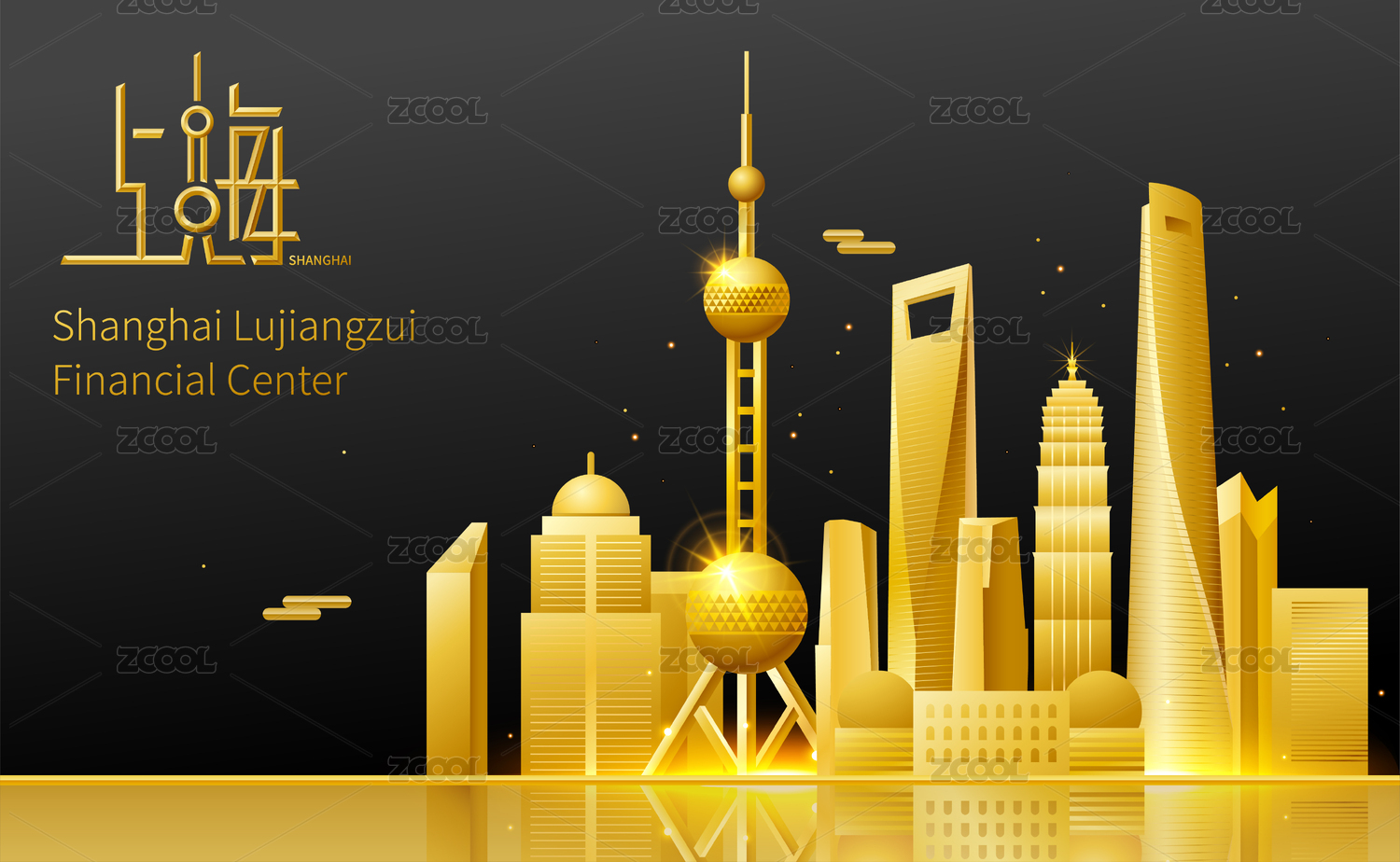 上海城市天際線(xiàn)陸家嘴金色立體建筑群