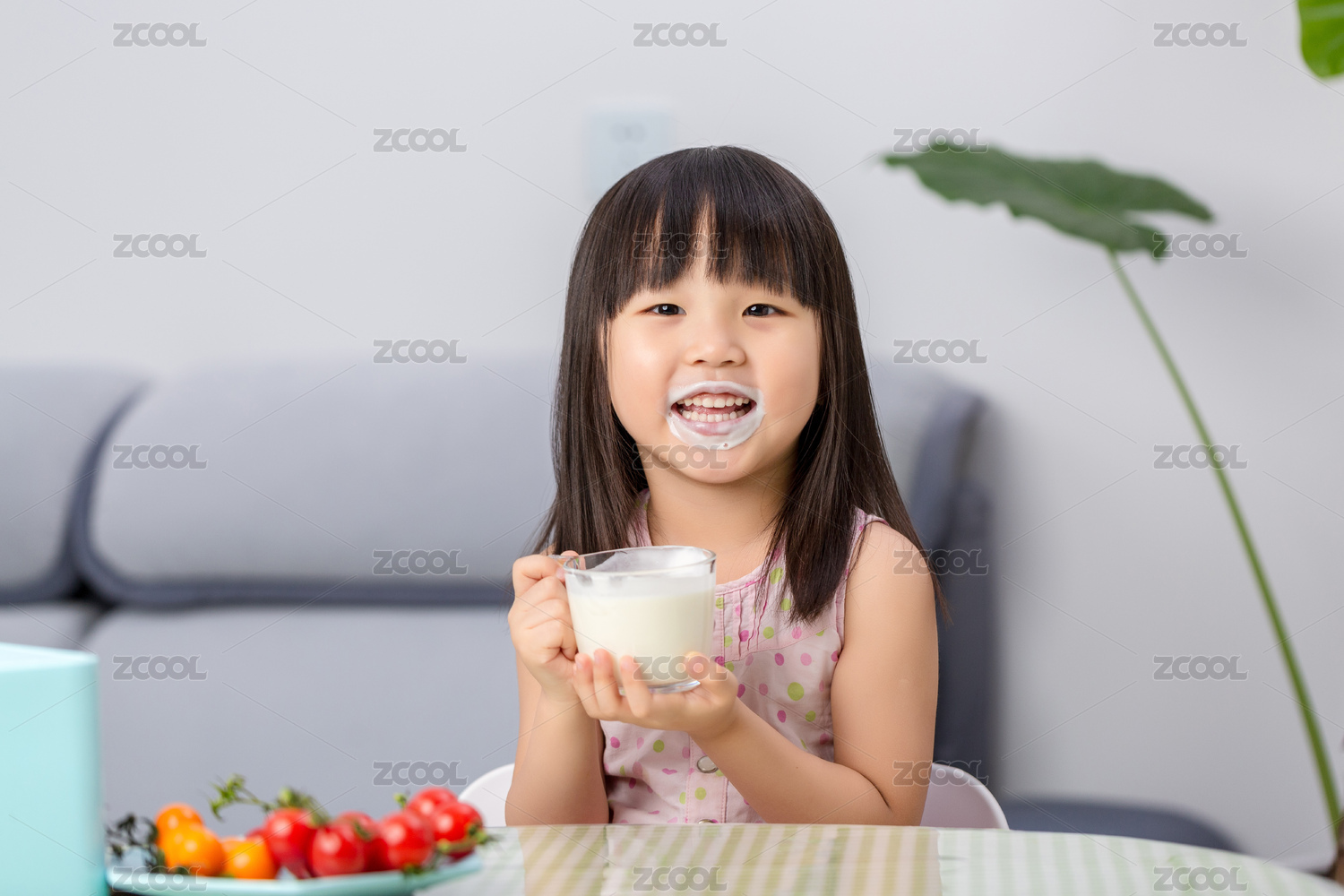 喝牛奶是嘴巴一圈留下牛奶的小女孩