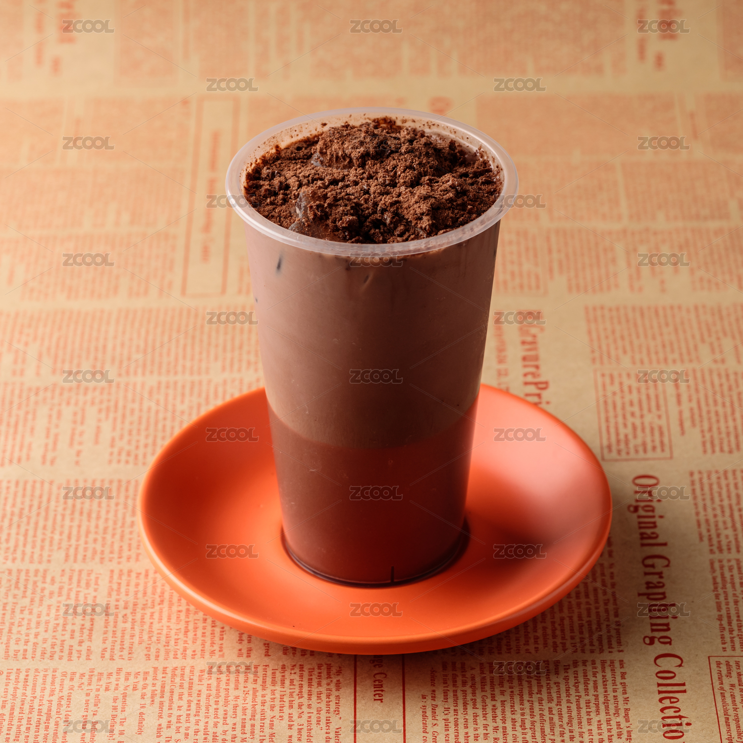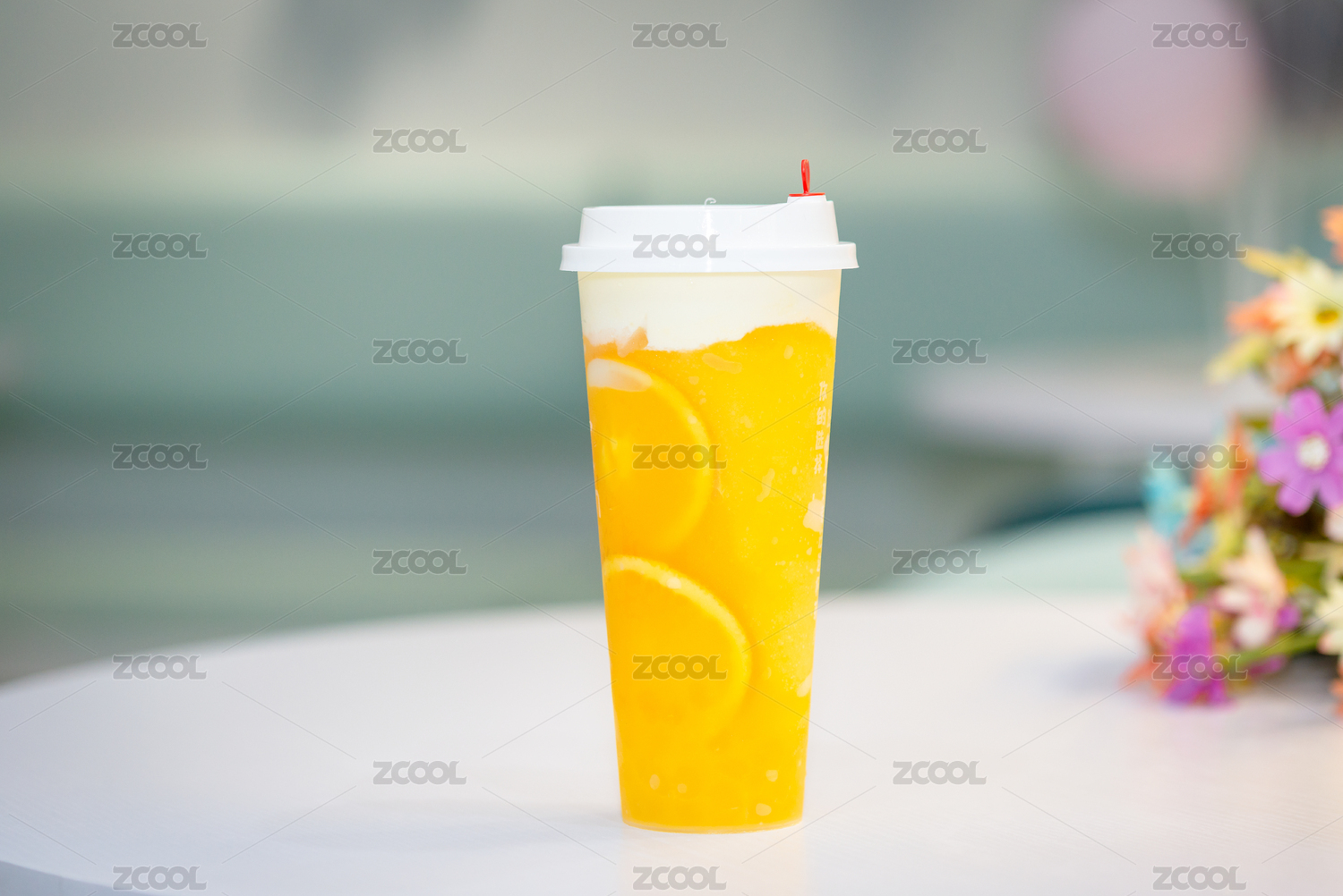 休閑吧白色桌子上放置的一杯橙汗牛奶飲料