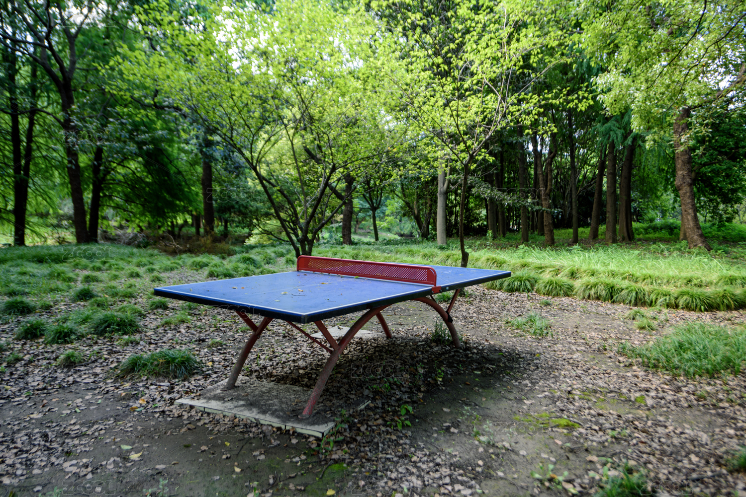 森林公園空地中的一張乒乓球桌