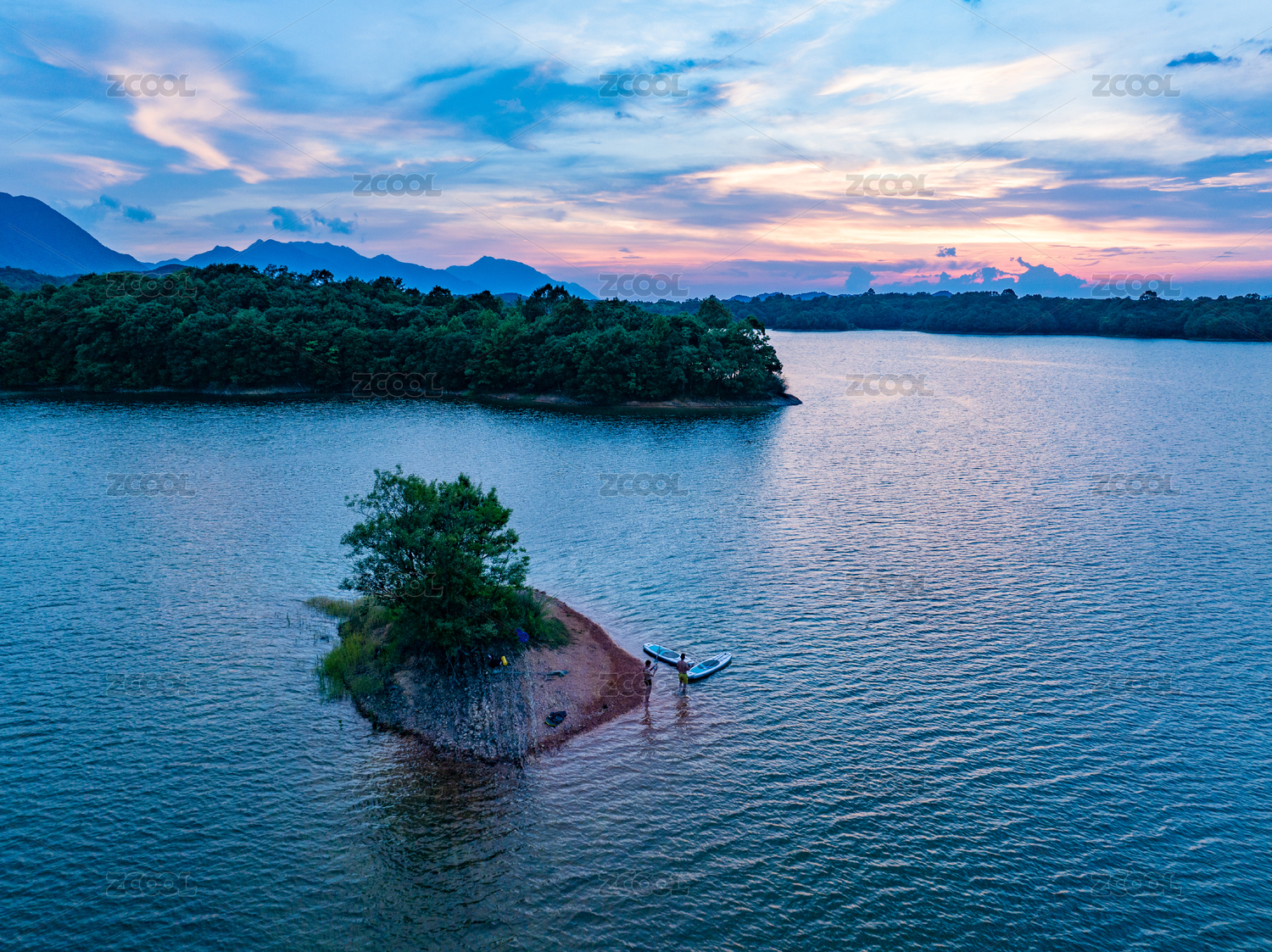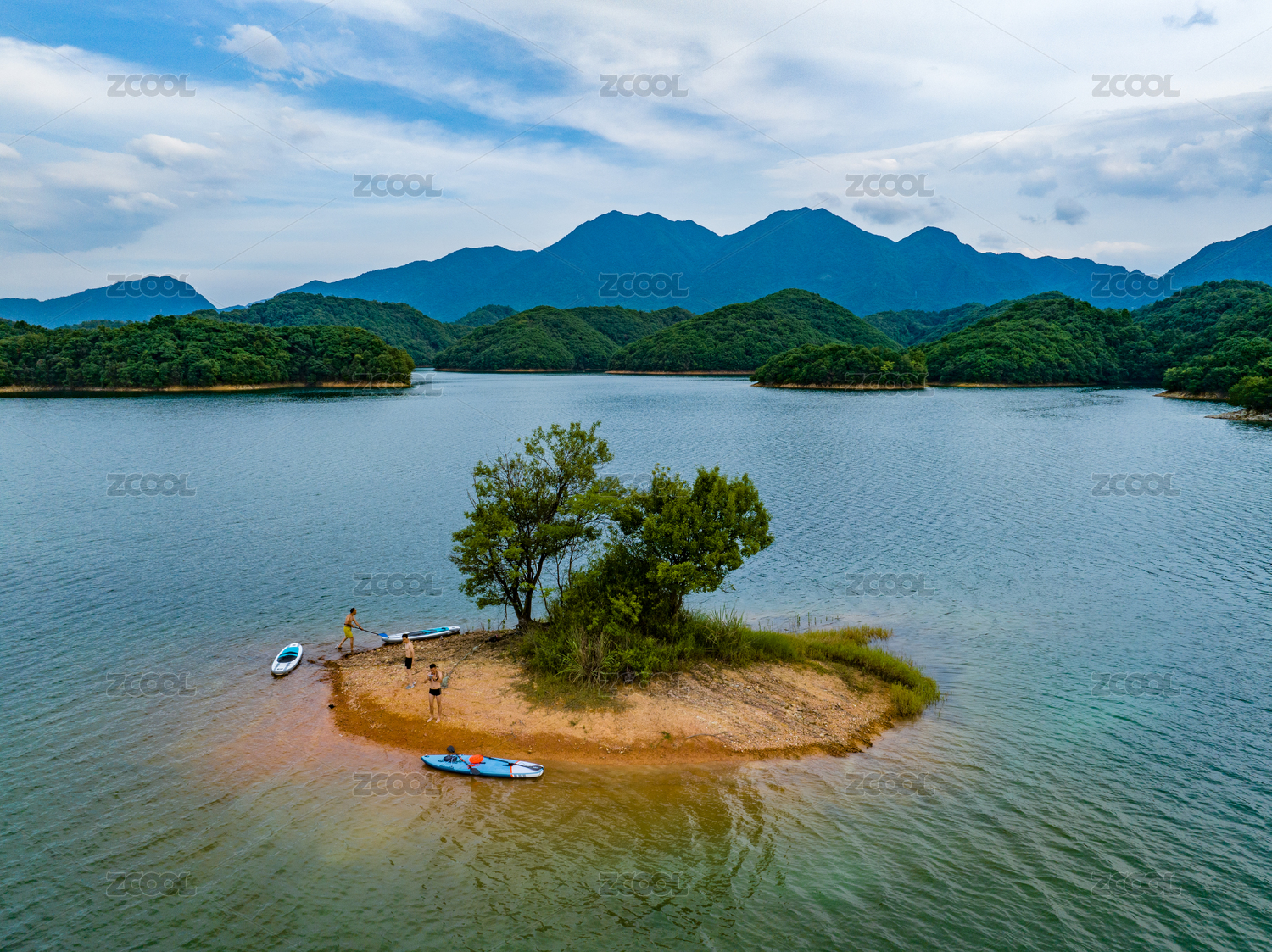 廬山西海藍(lán)色的湖和島嶼俯瞰,漿板運(yùn)動(dòng)