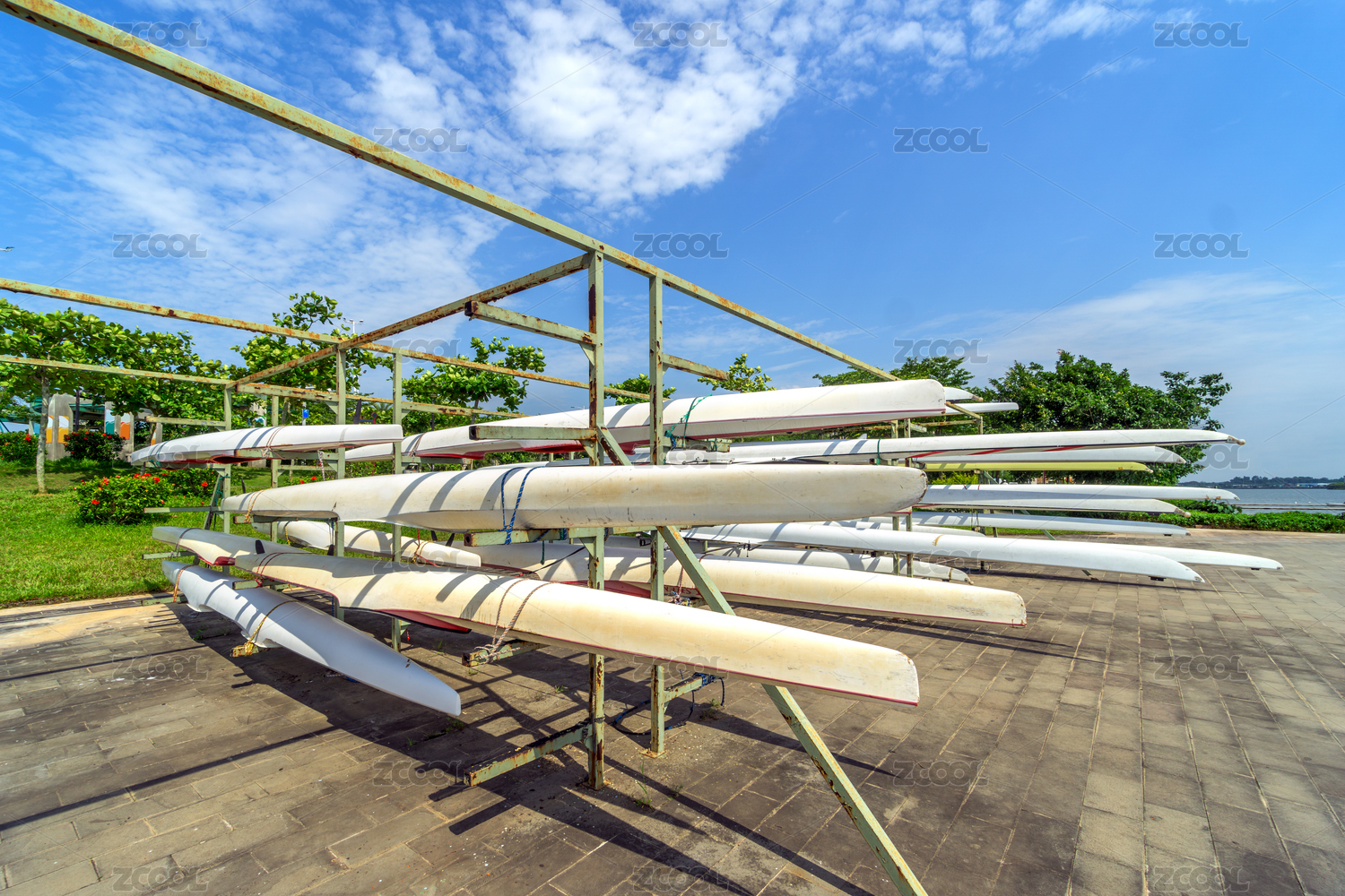 廣東湛江皮劃艇訓(xùn)練基地架上的皮劃艇