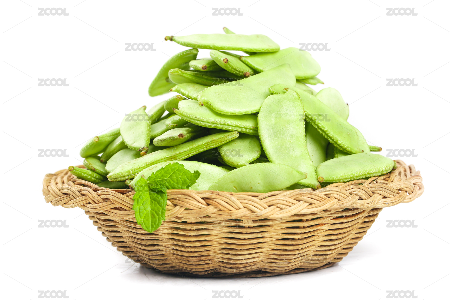 白底上放著一筐新鮮綠豆角
