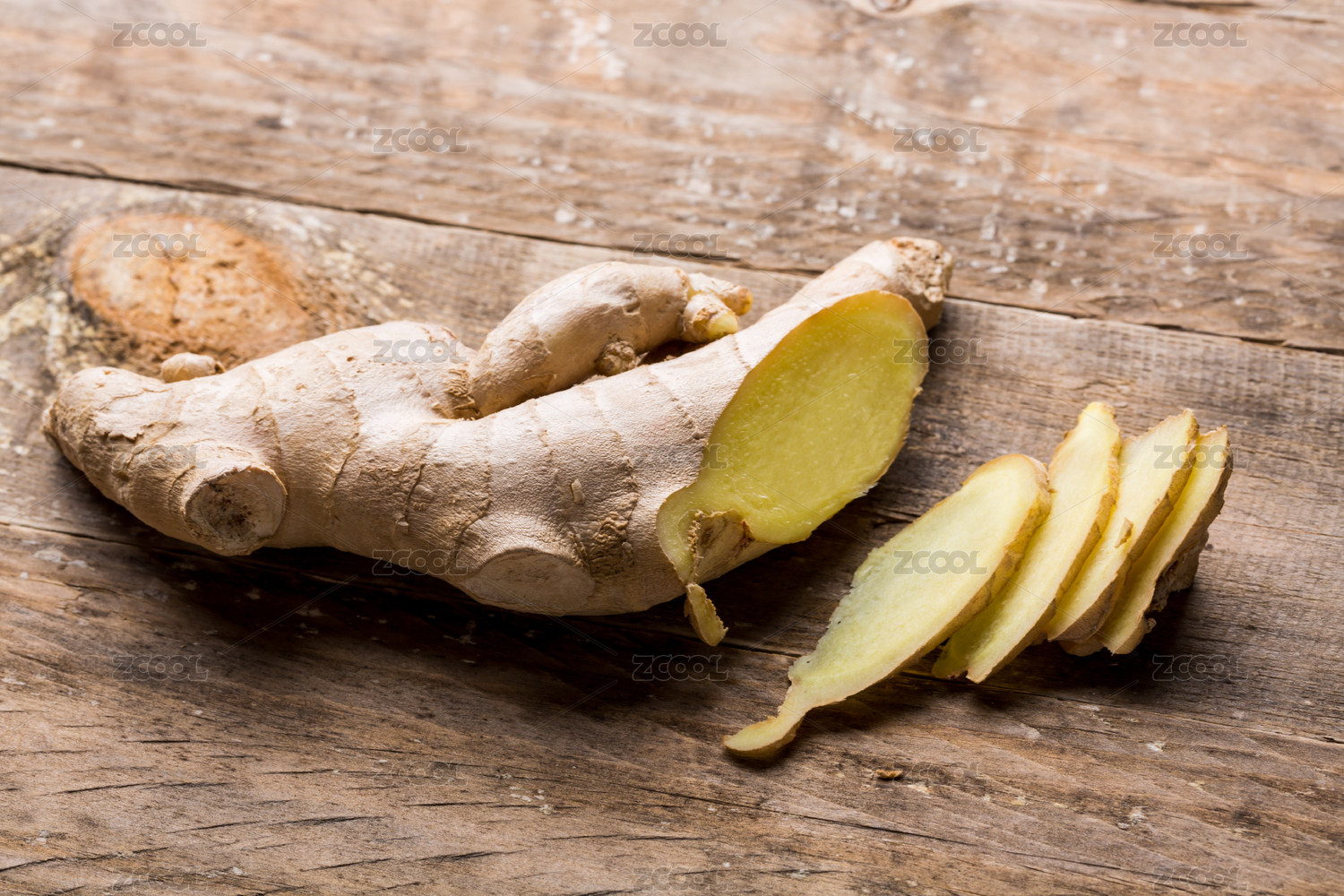 新鮮的切開(kāi)的姜在桌子上,特寫(xiě)鏡頭