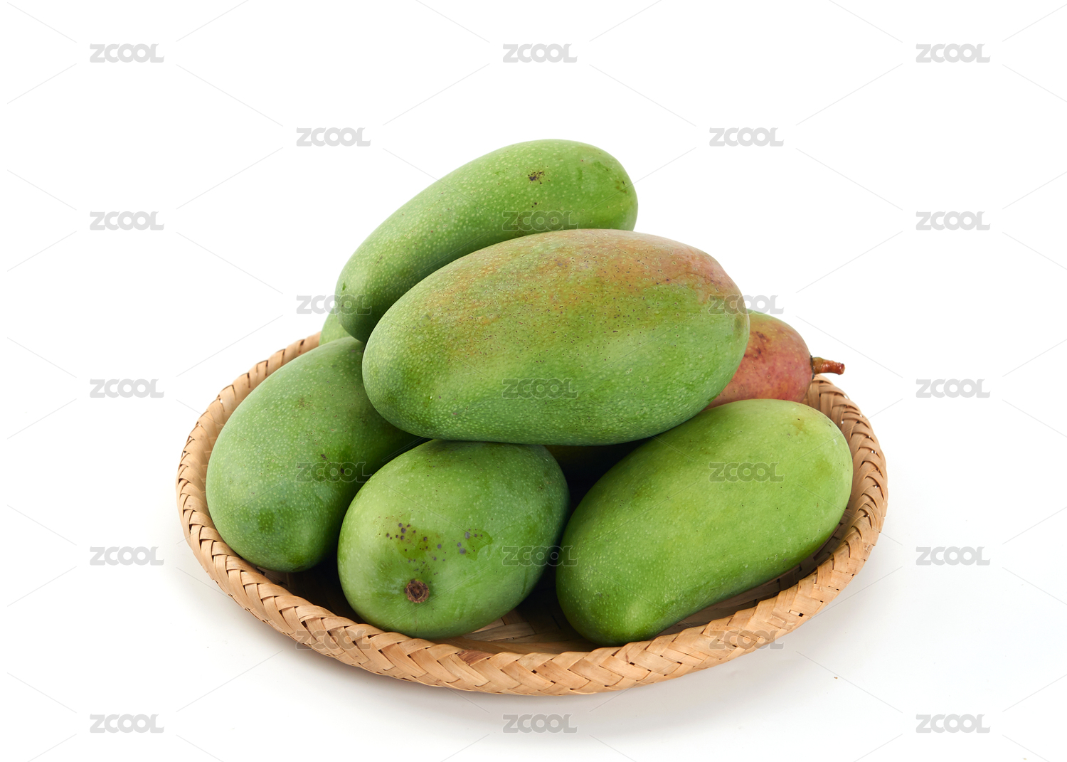 白色背景上擺放的新鮮青芒果