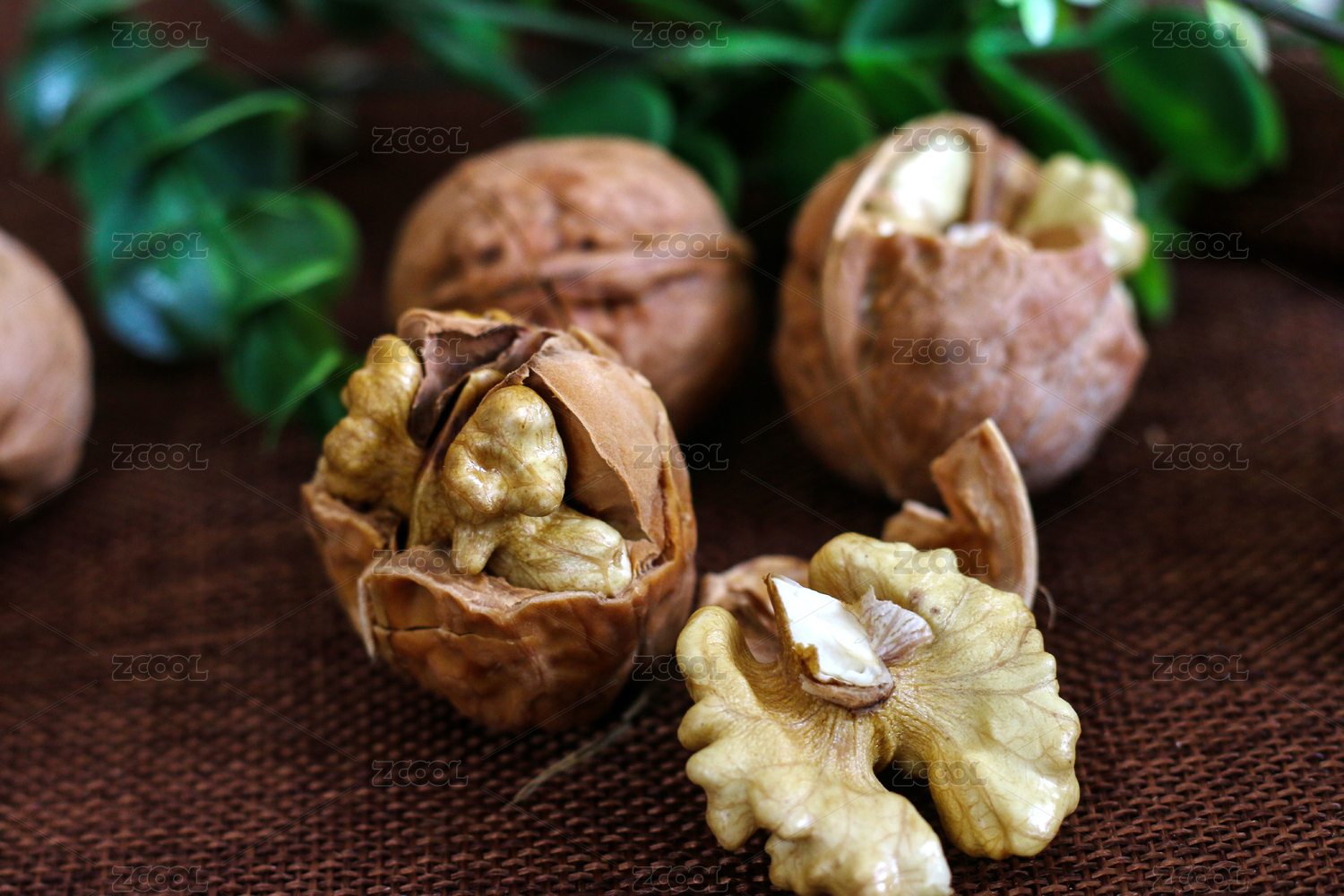 中國(guó)風(fēng)粗麻布上擺放的新鮮核桃