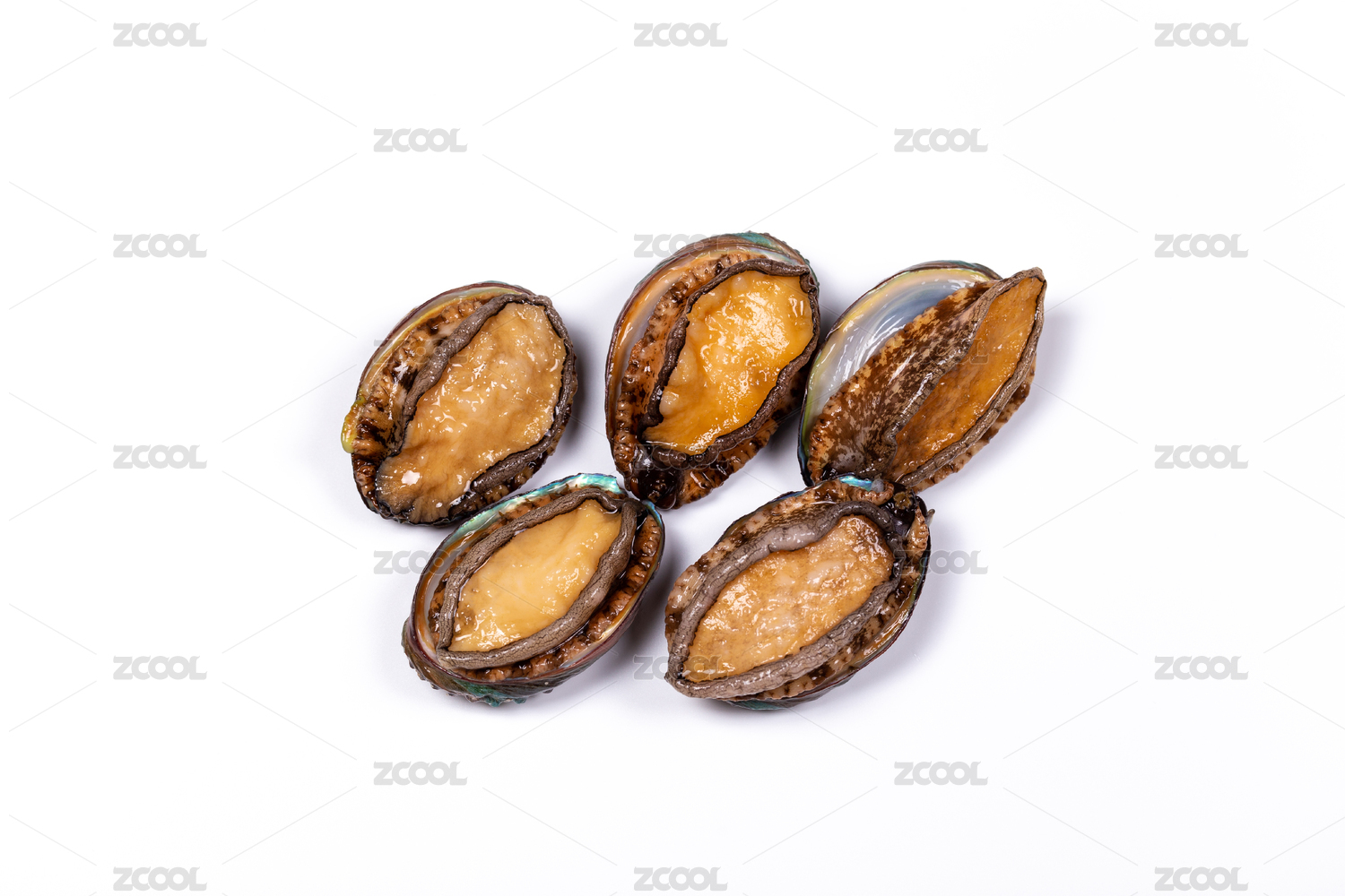 幾個(gè)新鮮鮑魚(yú)放在白色背景中