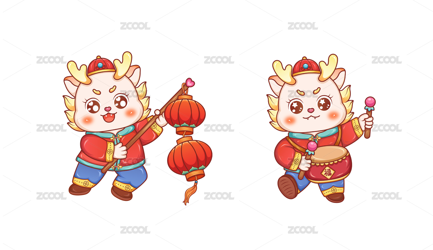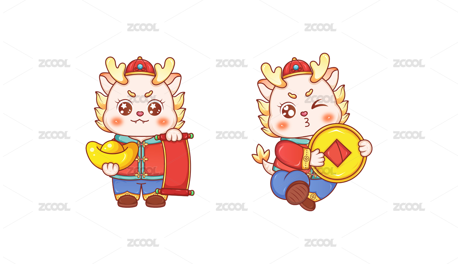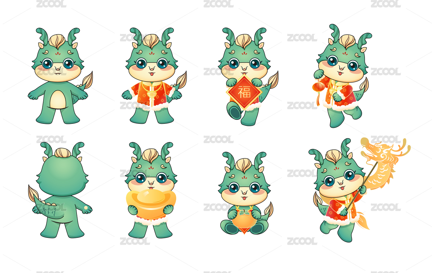 龍年新年卡通龍恭賀新年動(dòng)作合集矢量插畫